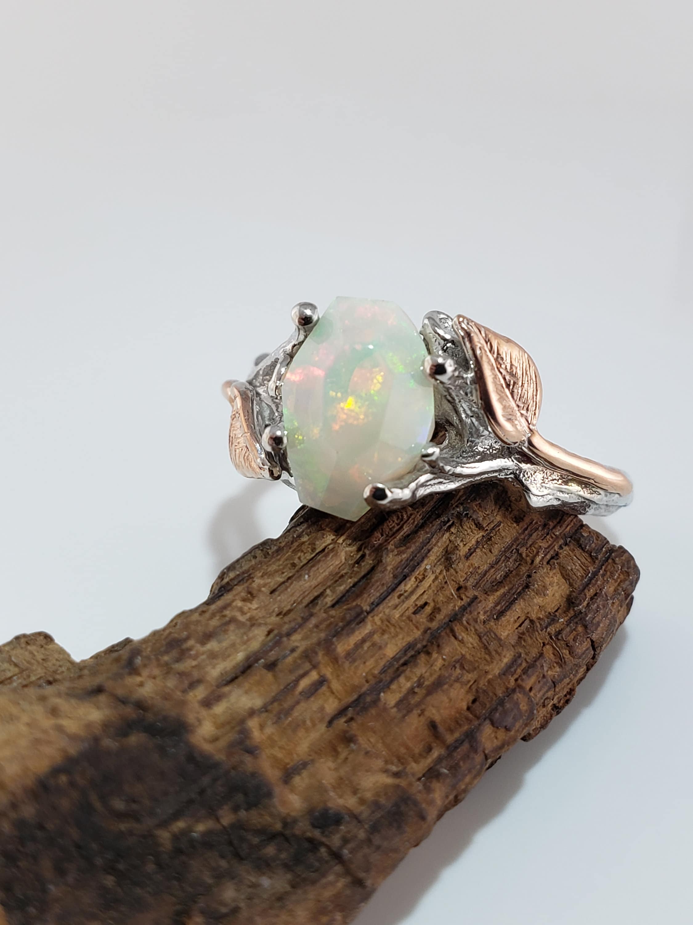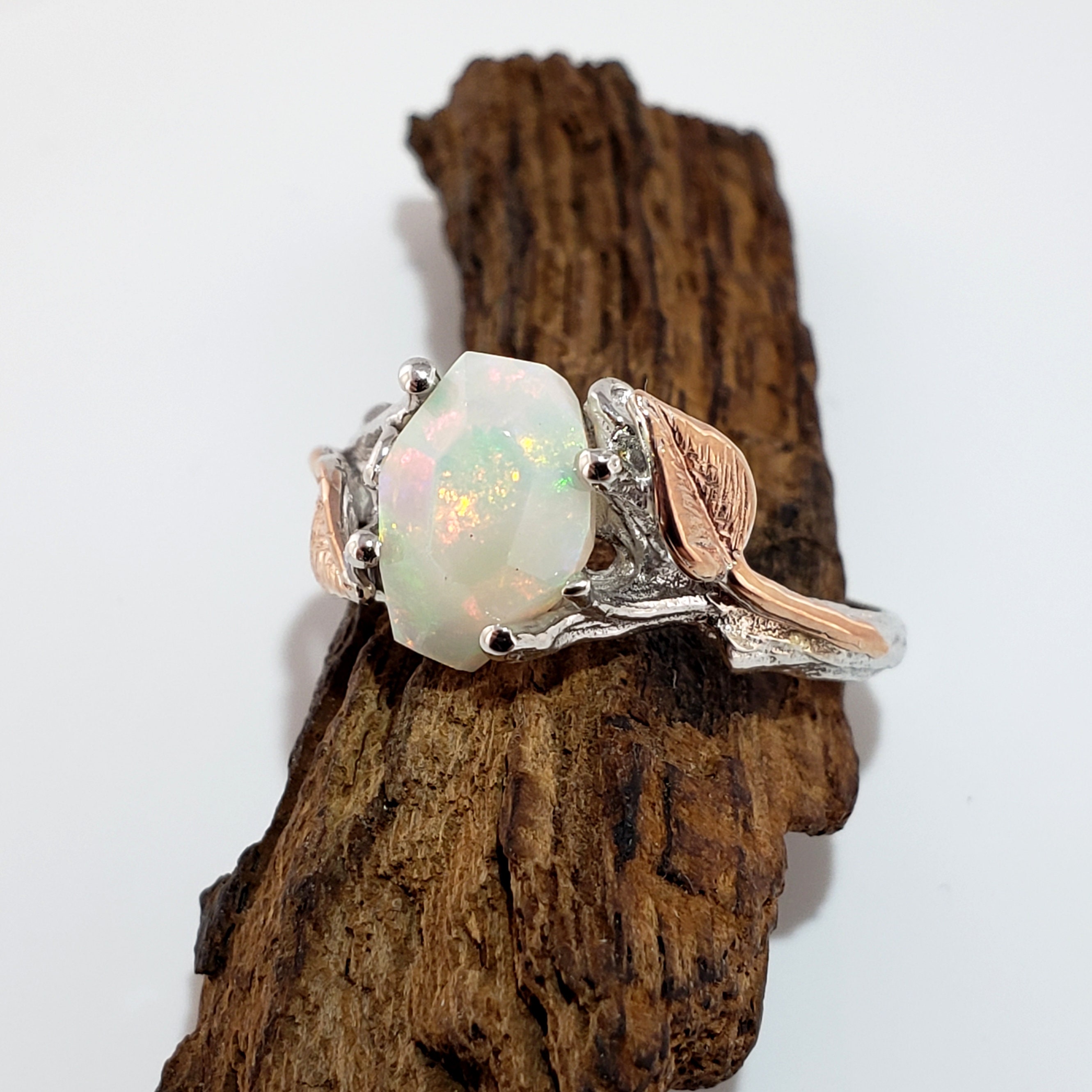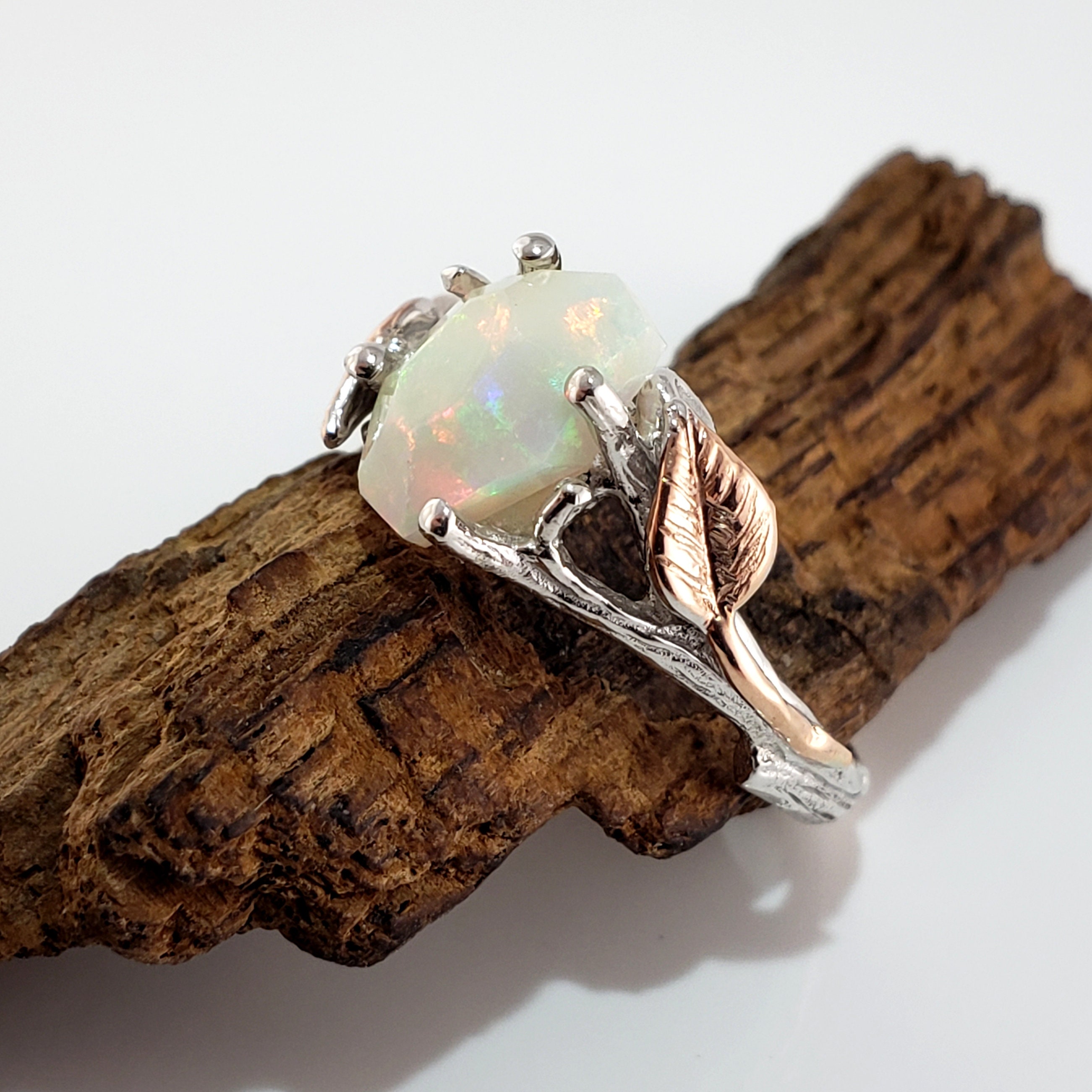 Leaf and Twig Engagement Ring, Two Tone Gold Raw Opal Ring, Unique Engagement Ring, Opal Engagement Ring Hand sculpted by Dawn Vertrees