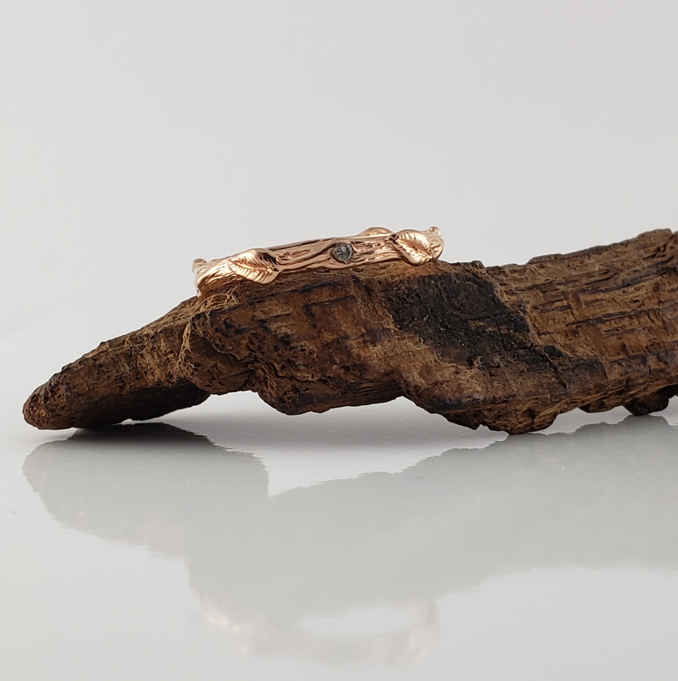 14k Rose Gold (shown) Four Leaf Eternity Band with 4 hand sculpted Leaves in Solid Gold