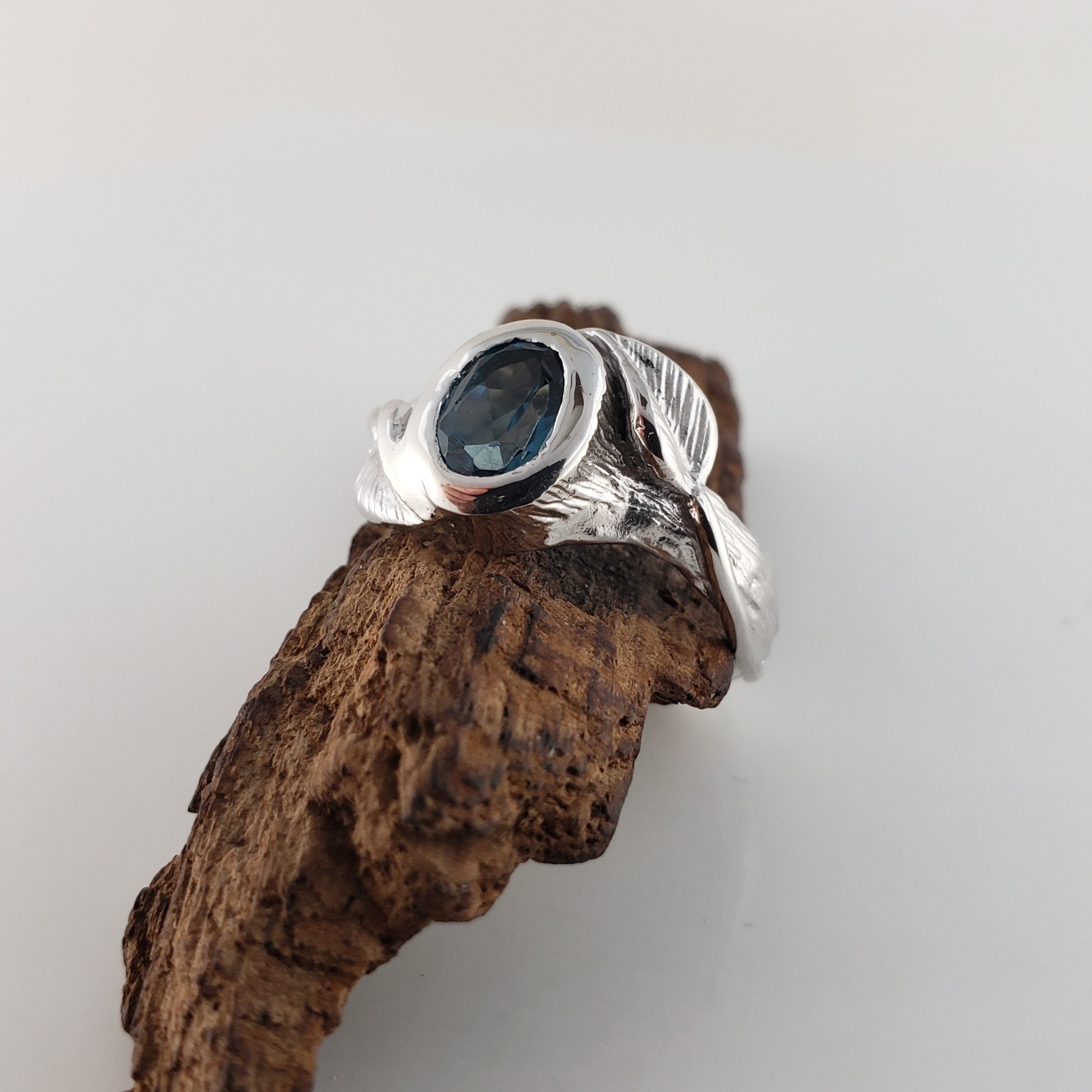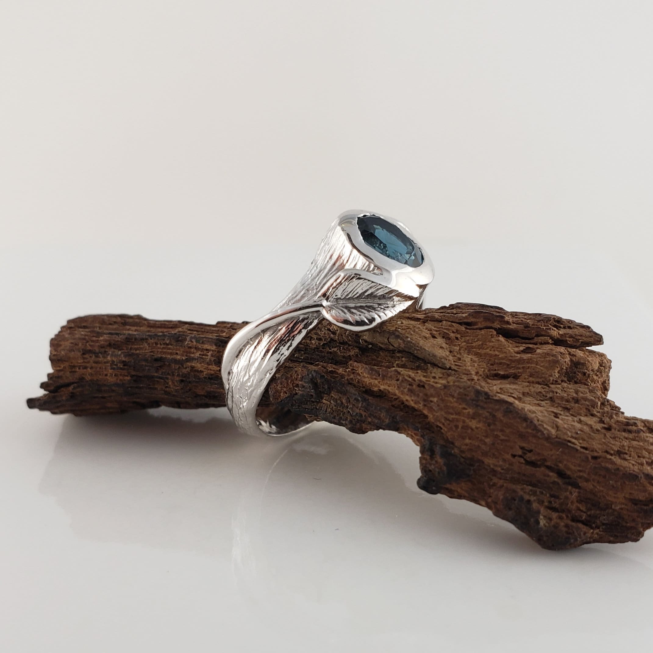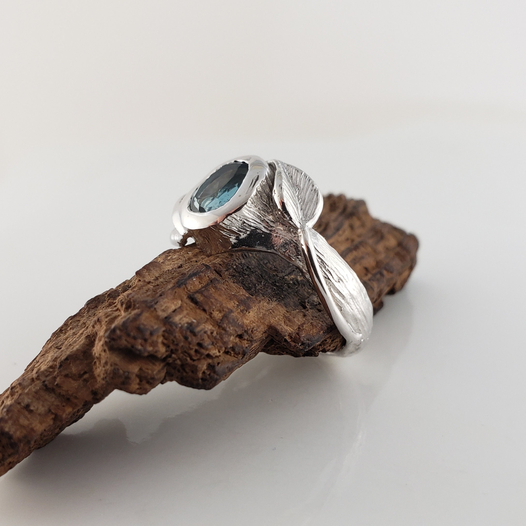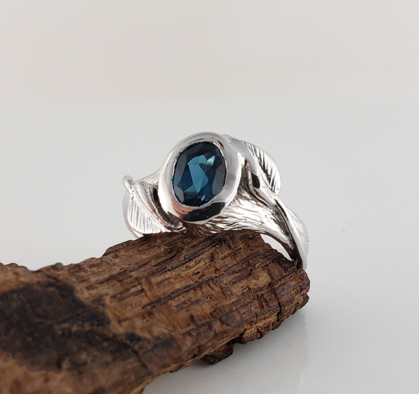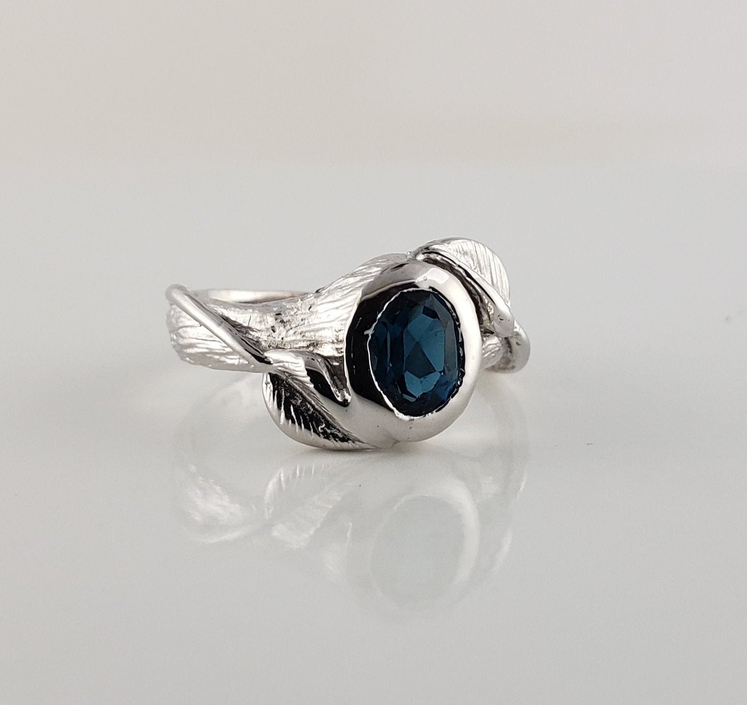 Leaf and Twig Gemstone Engagement Ring, Blue Topaz, Silver Birthstone Wedding Ring by DV Designs