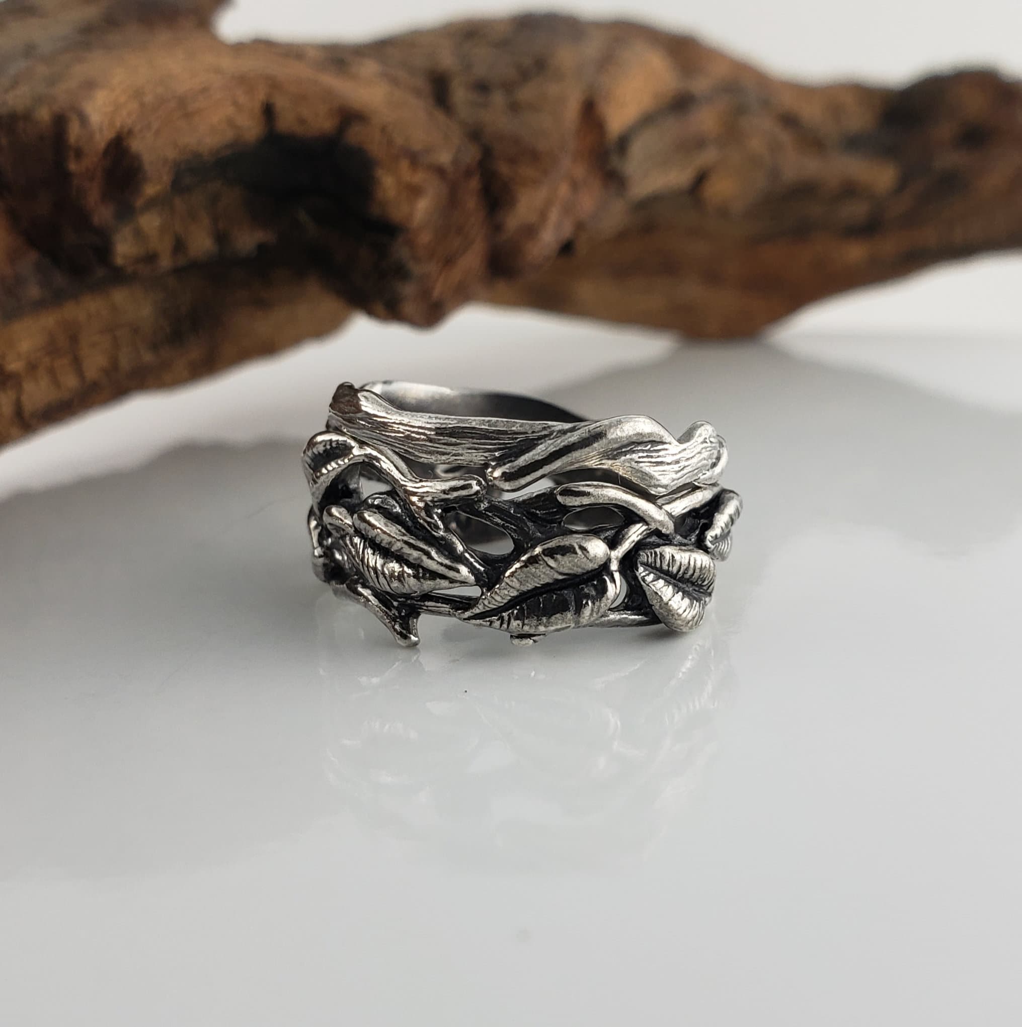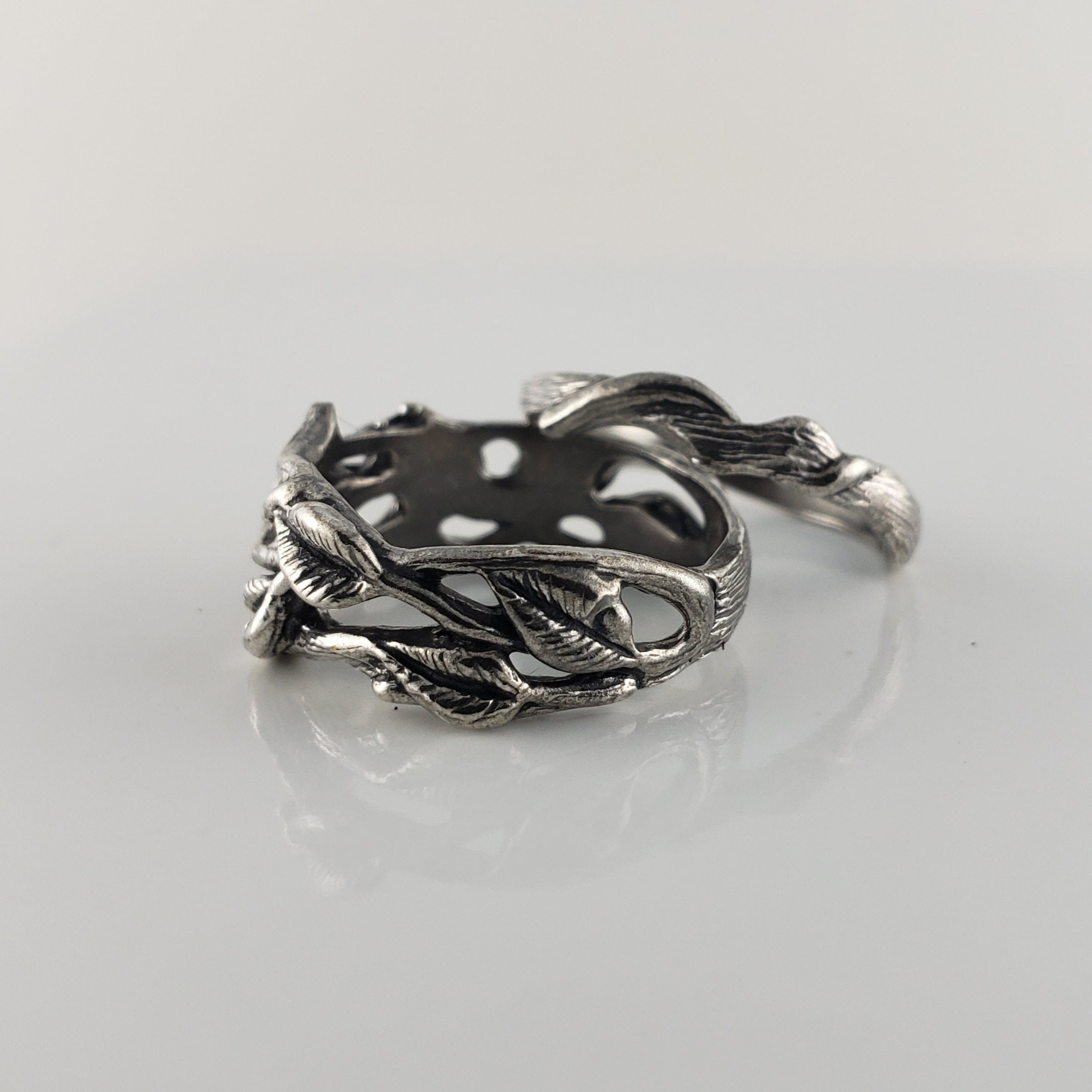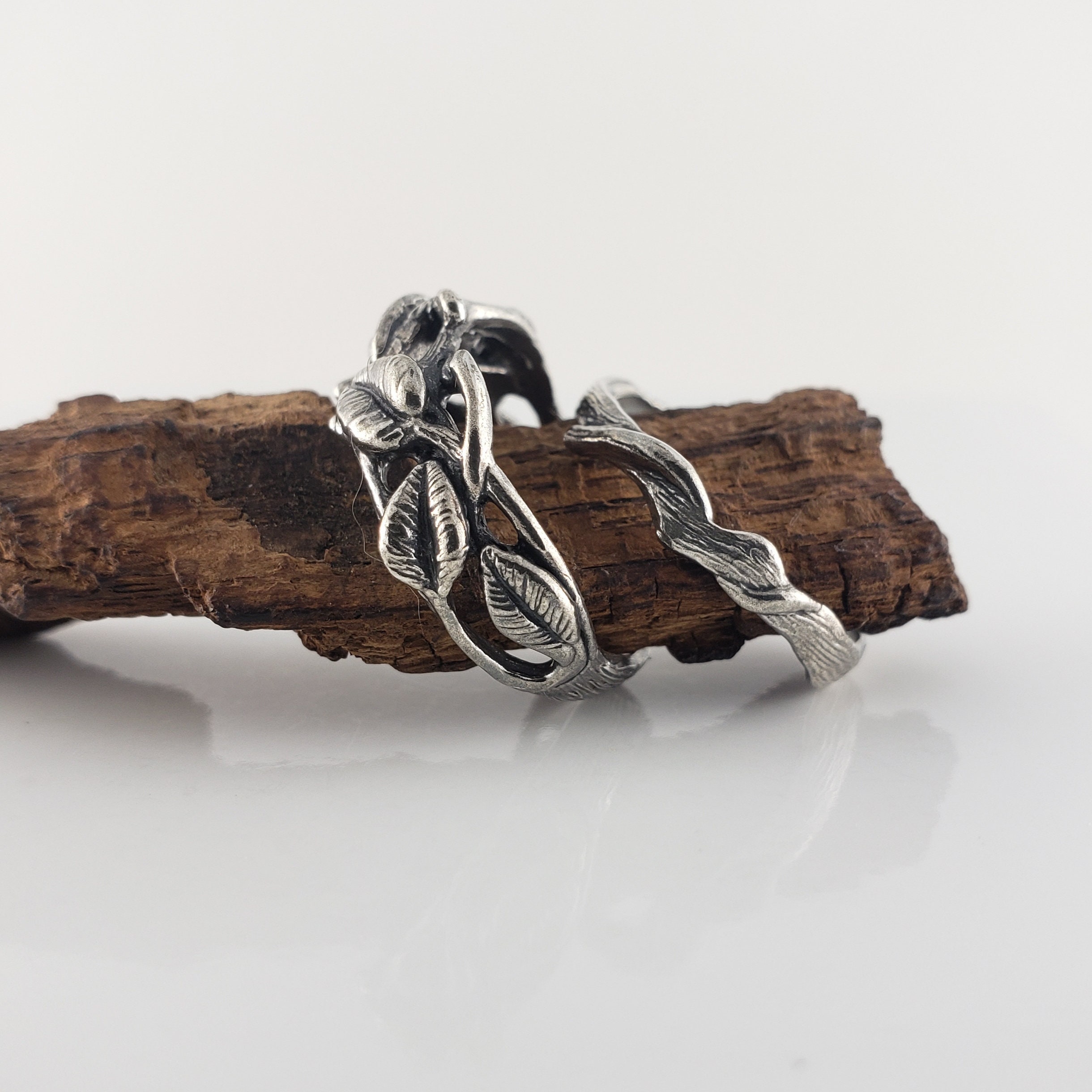 Sterling Silver Leaf, Twig and Branch Wedding Band, Bridal Set, Silver Gift Jewelry Gift by DV Jewelry Designs