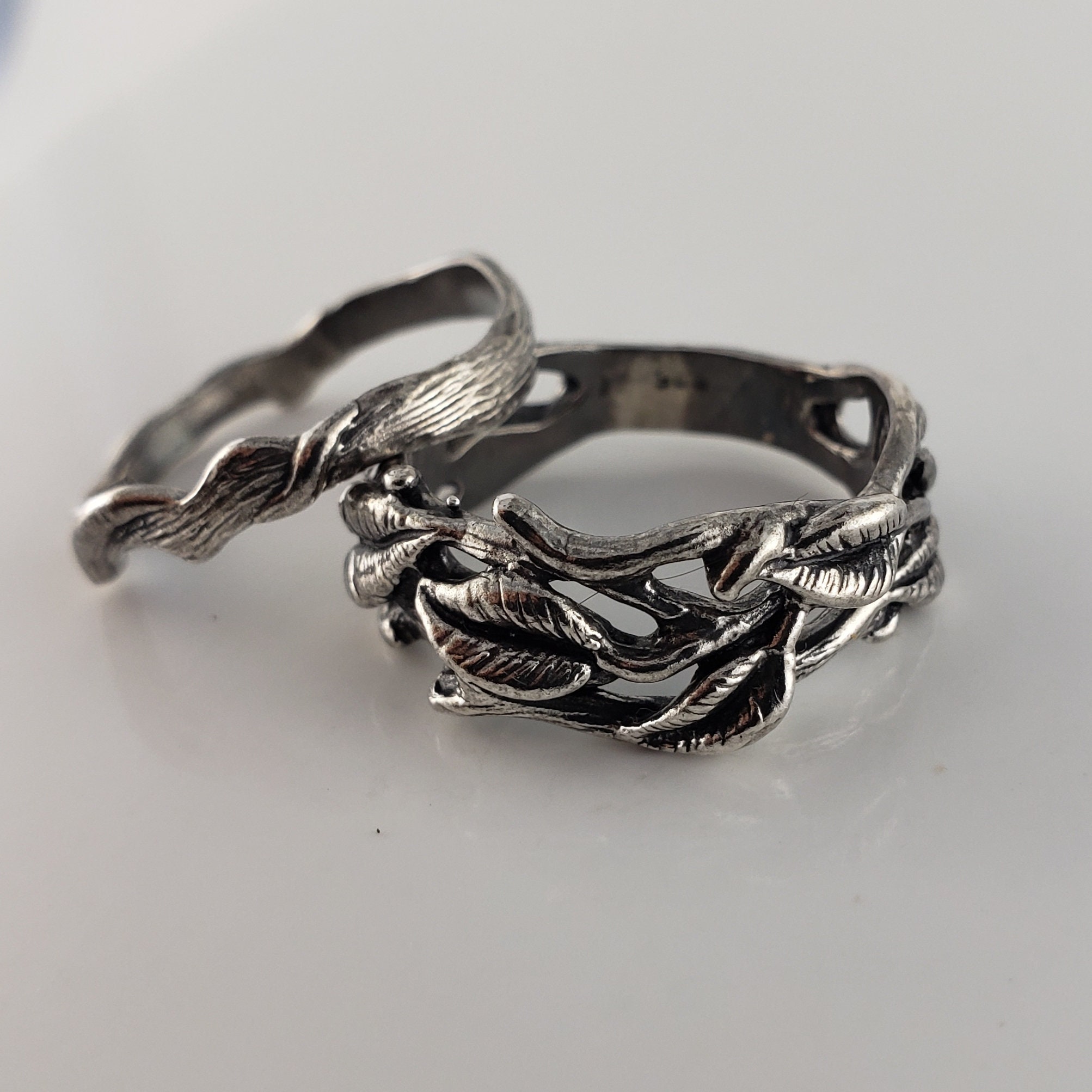 Sterling Silver Leaf, Twig and Branch Wedding Band, Bridal Set