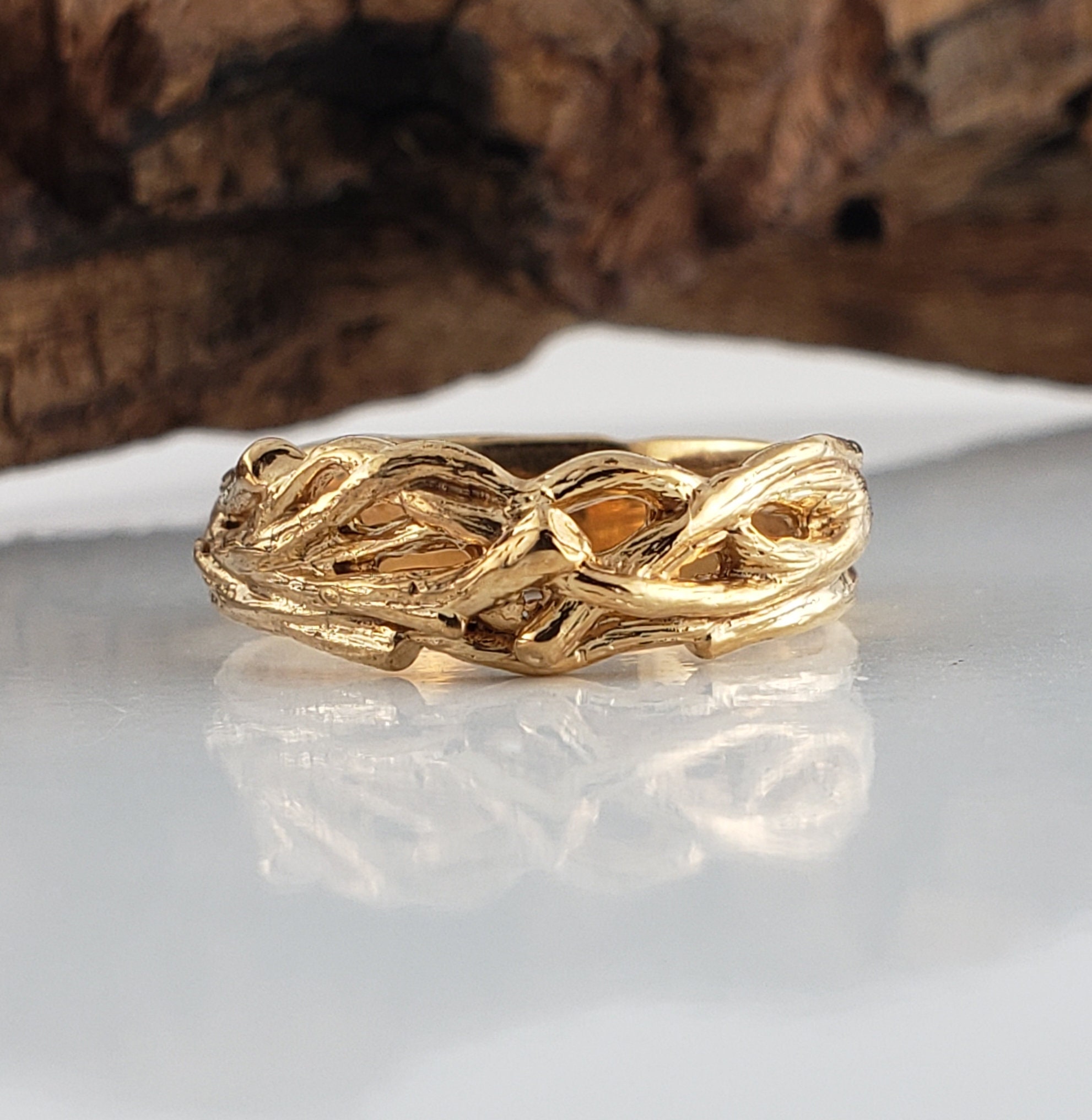 Crossover Twig Wedding Ring, 14k Gold, (White, Rose or Yellow Gold)