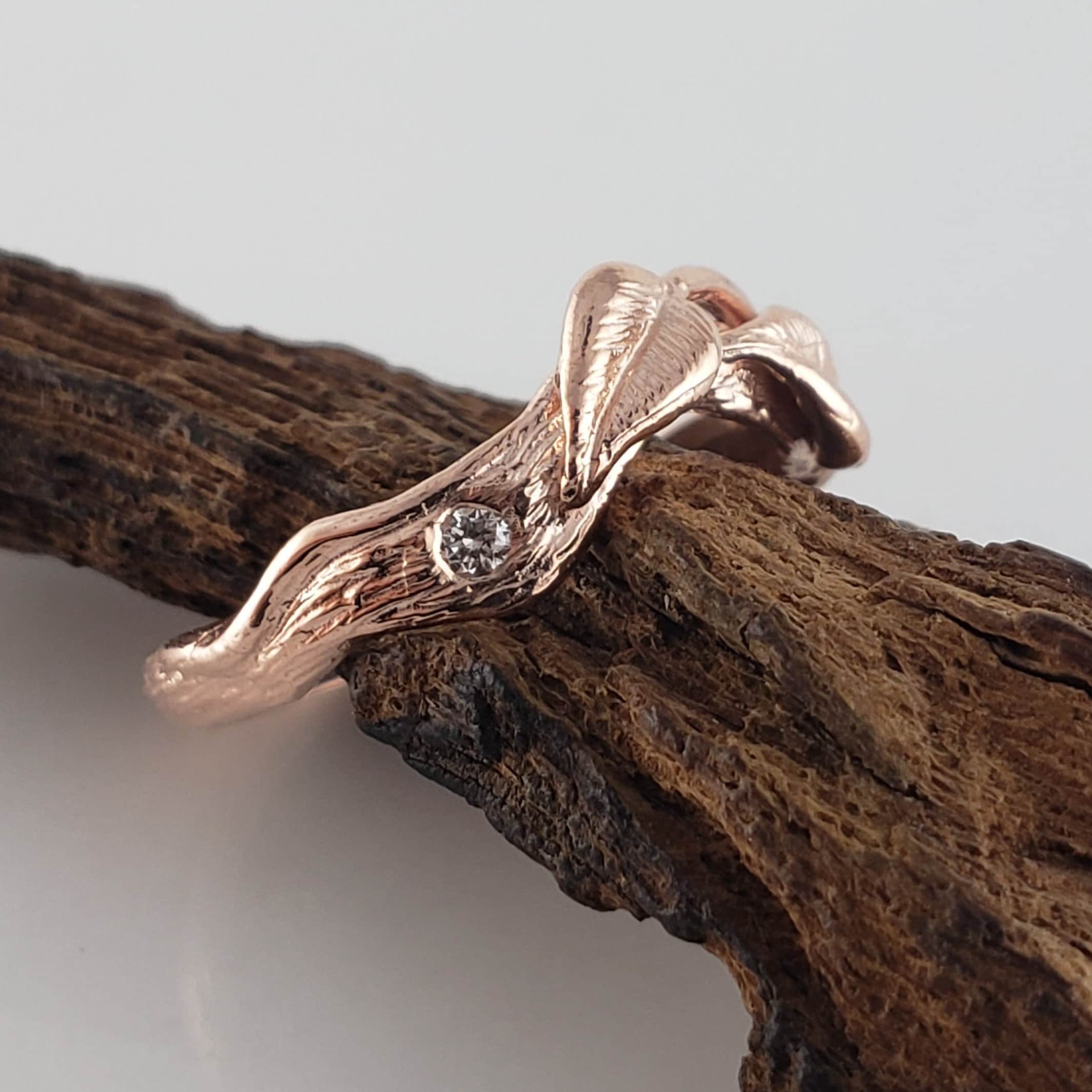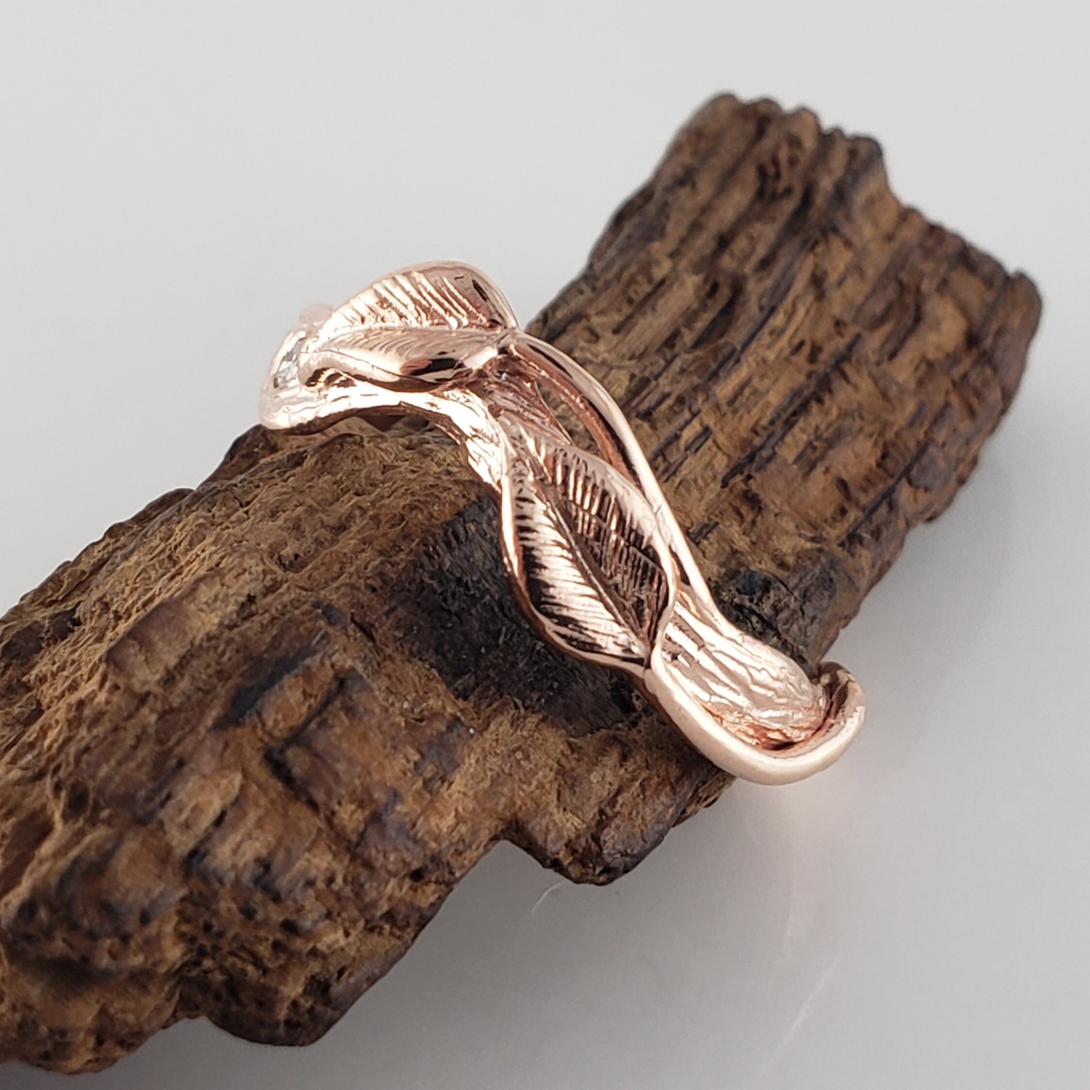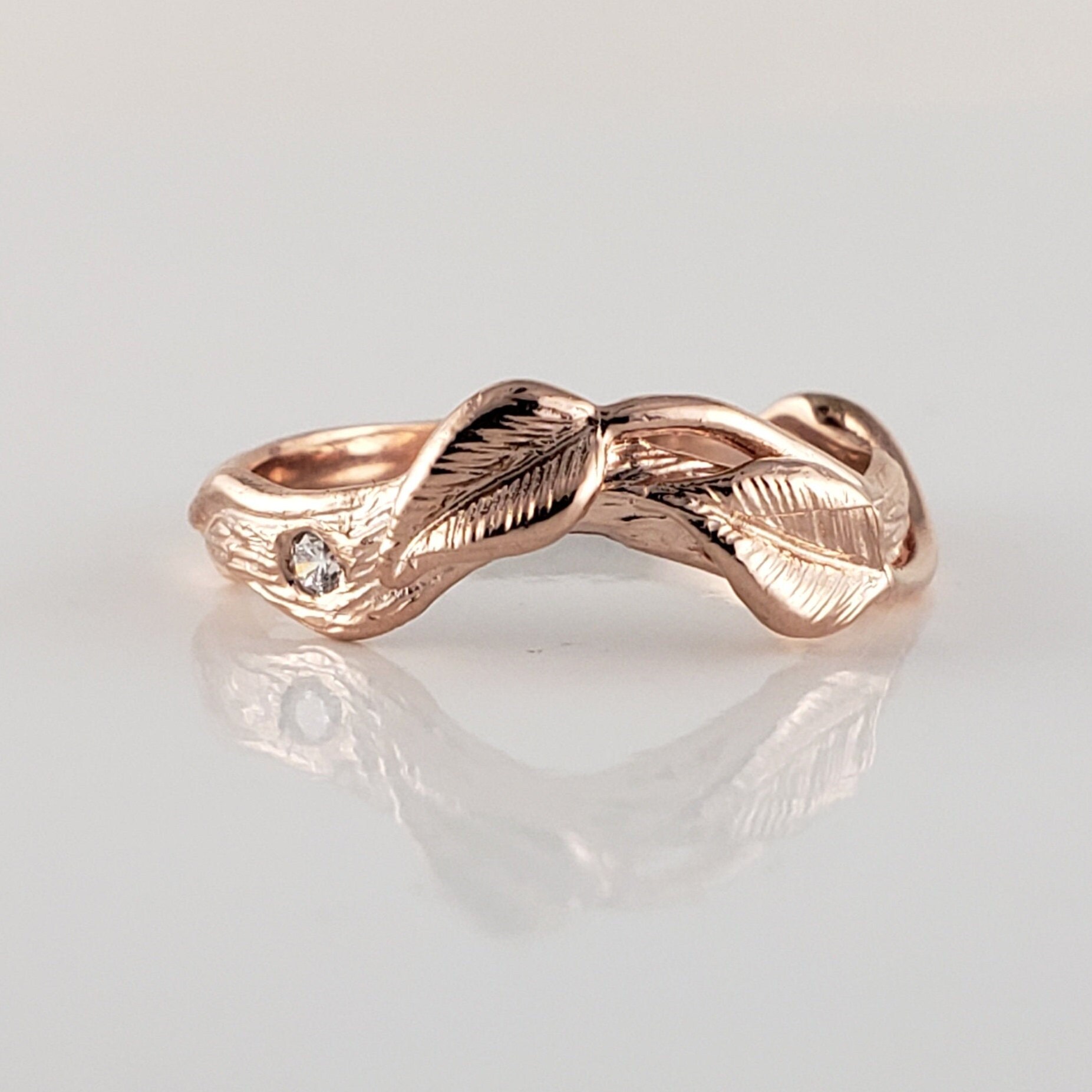 Diamond Leaf Wedding Band: 14k Rose Gold Twig Stacking Ring