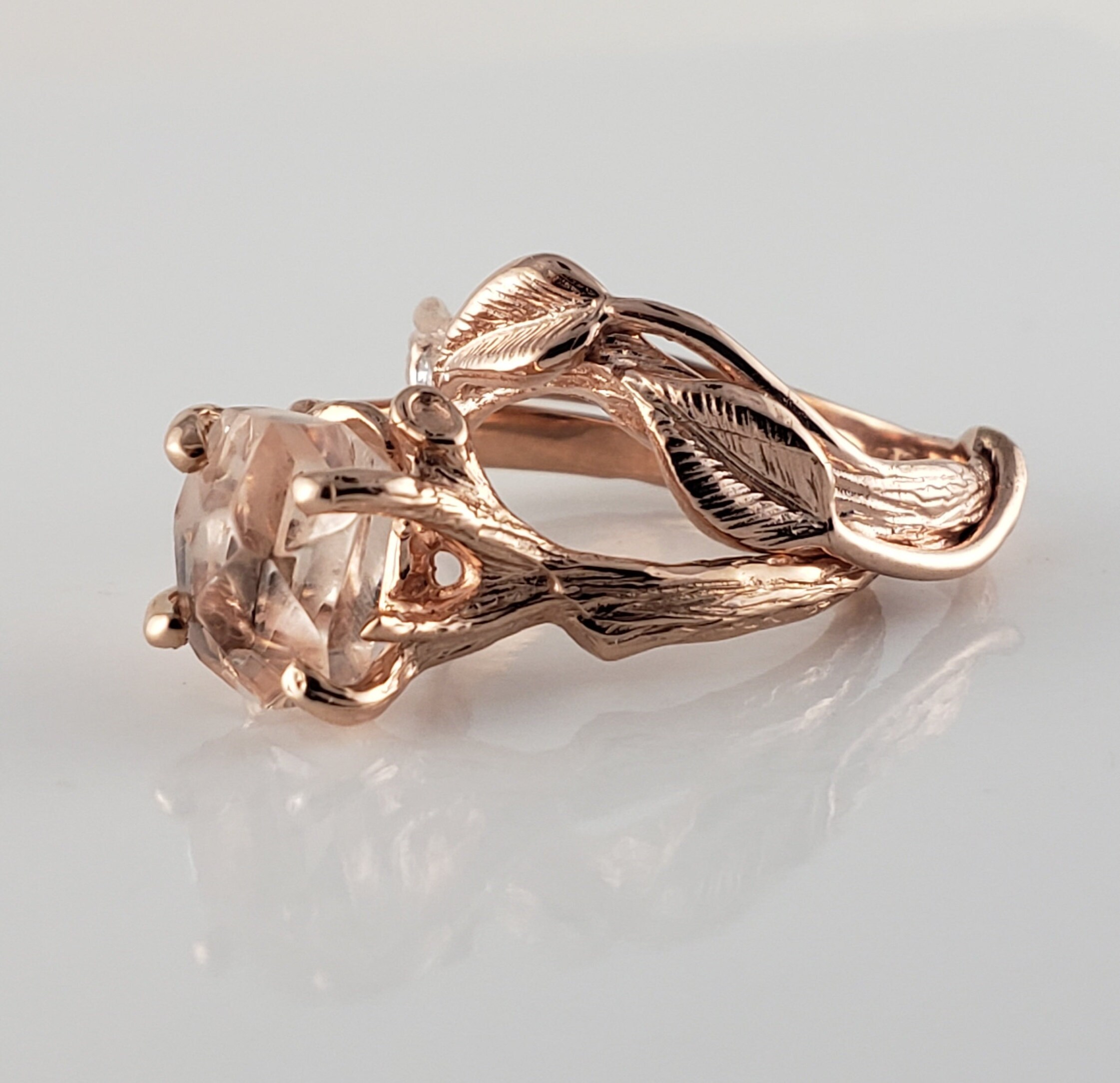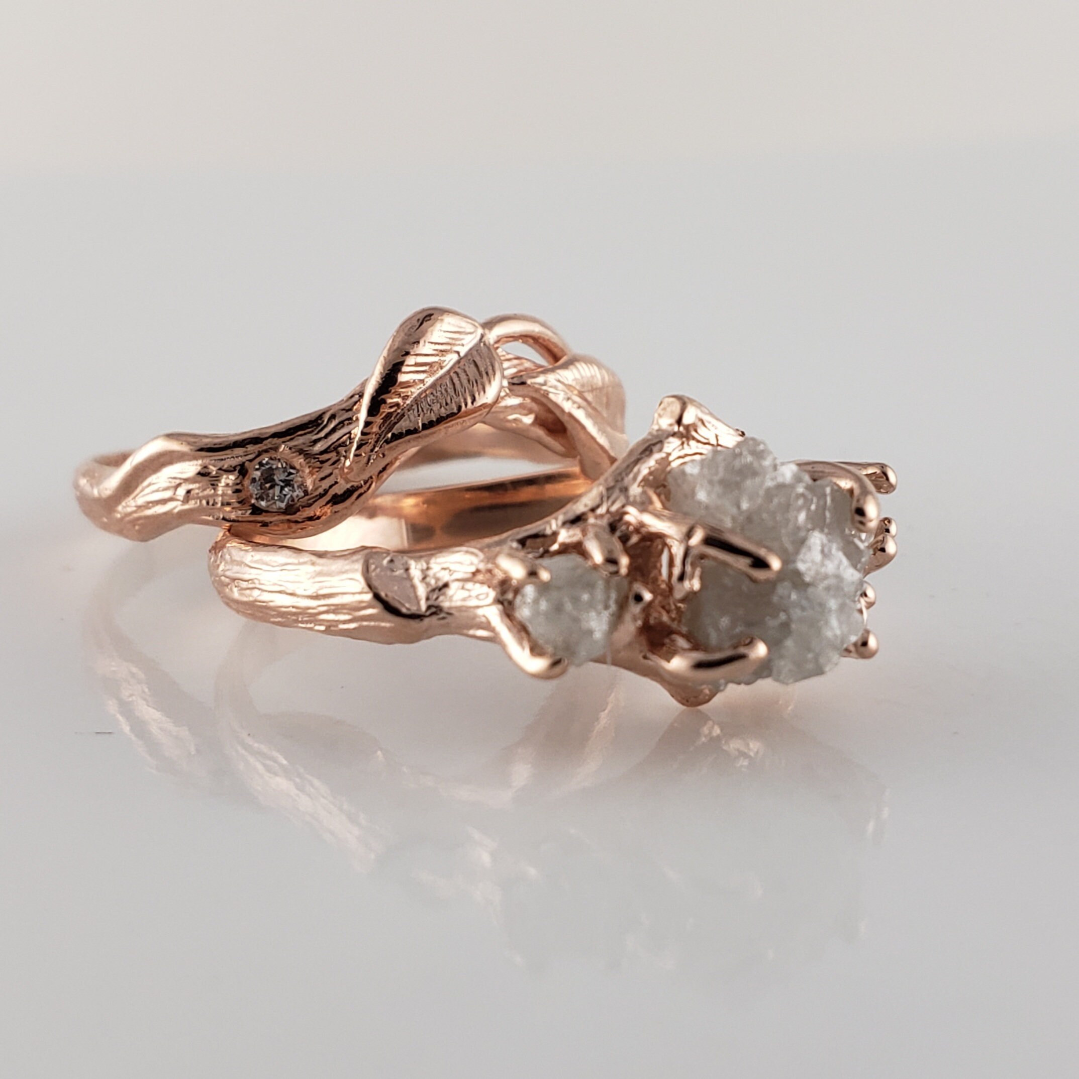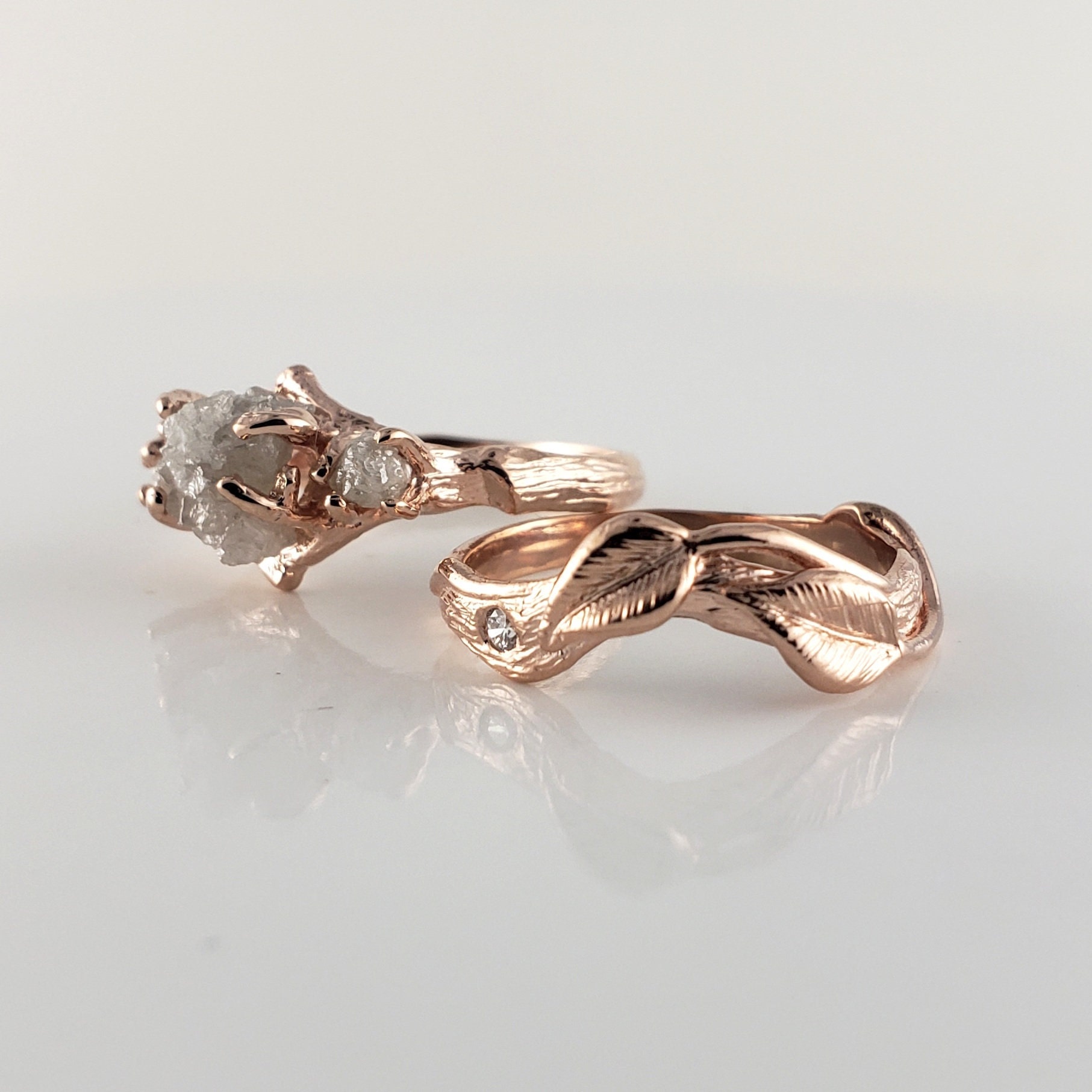 Diamond Leaf Wedding Band: 14k Rose Gold Twig Stacking Ring