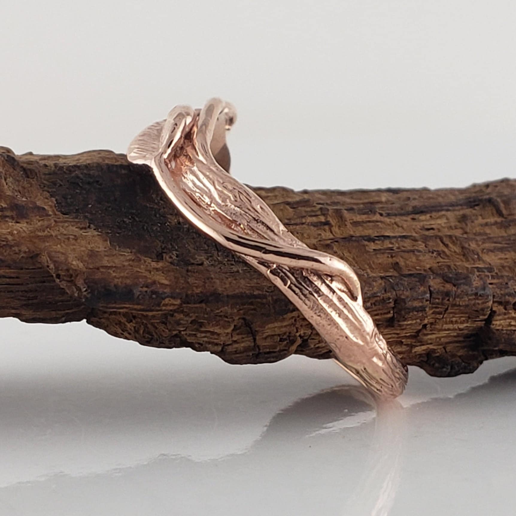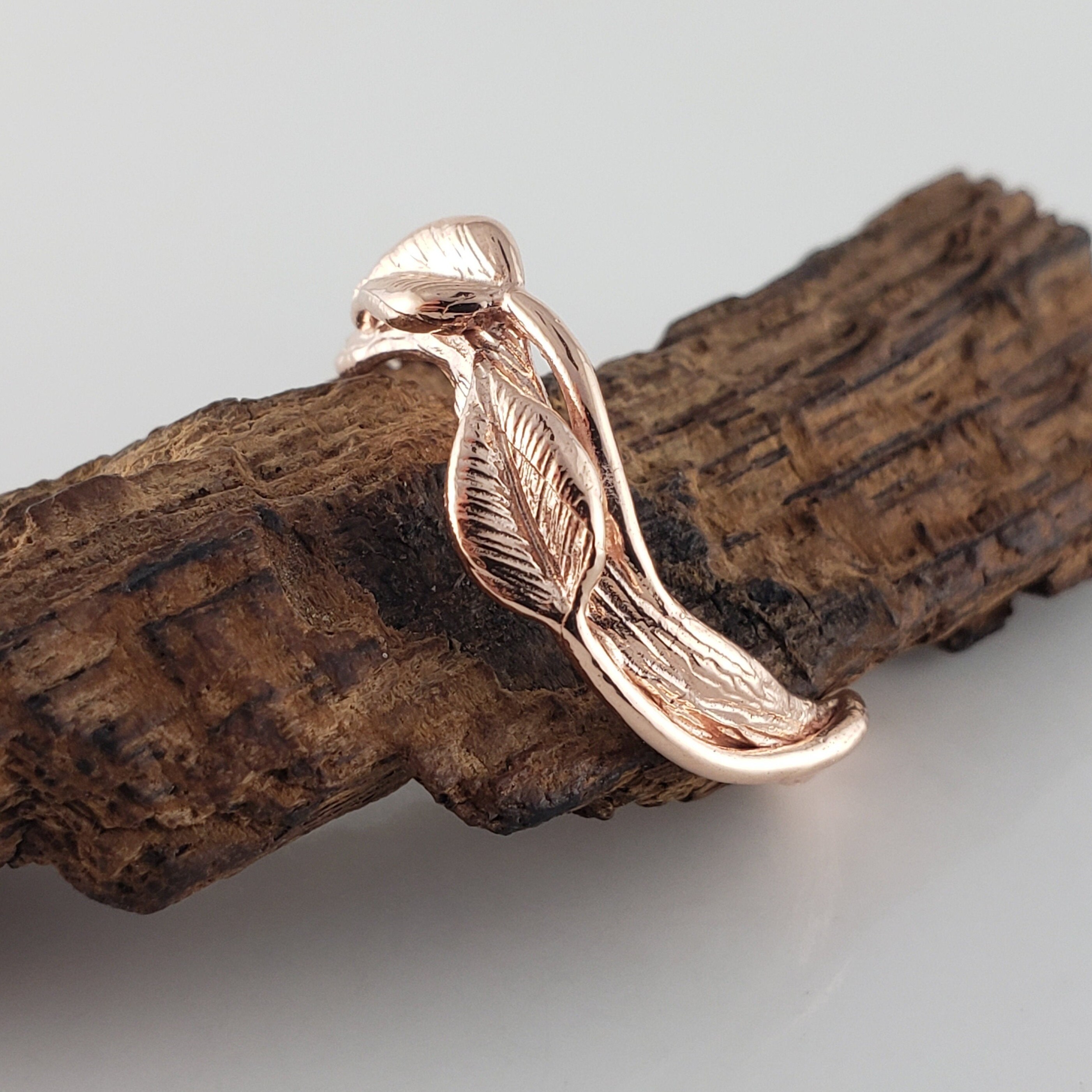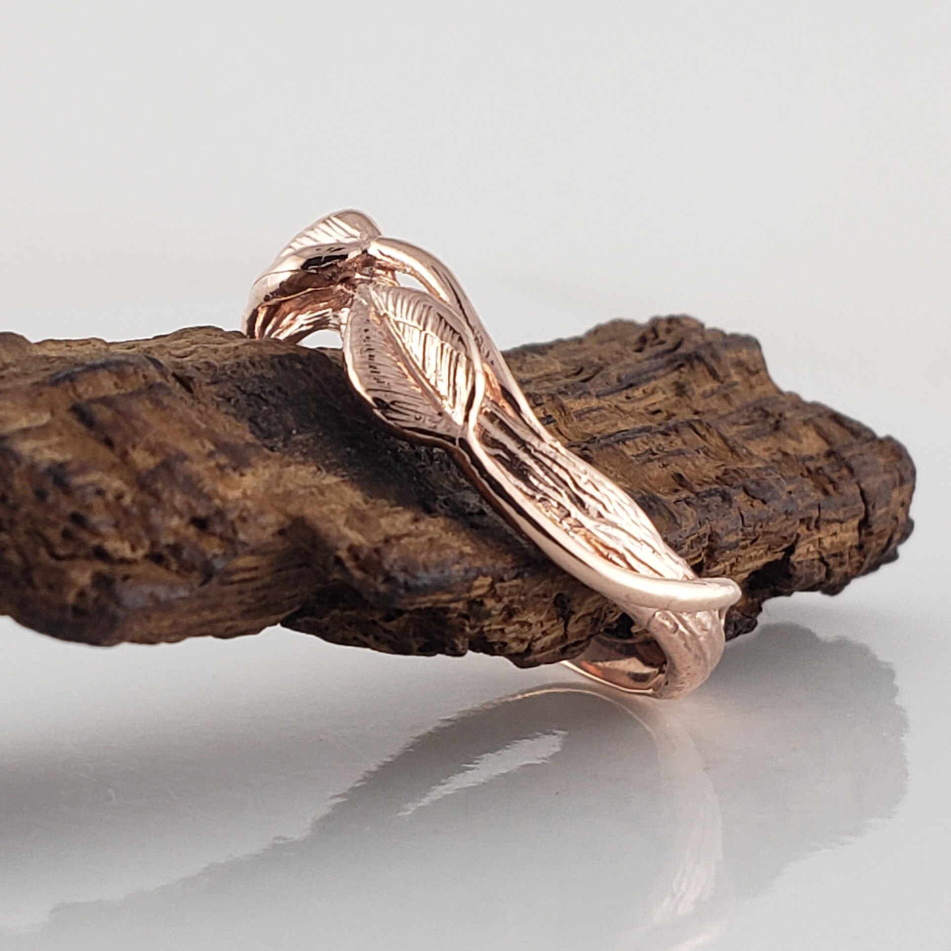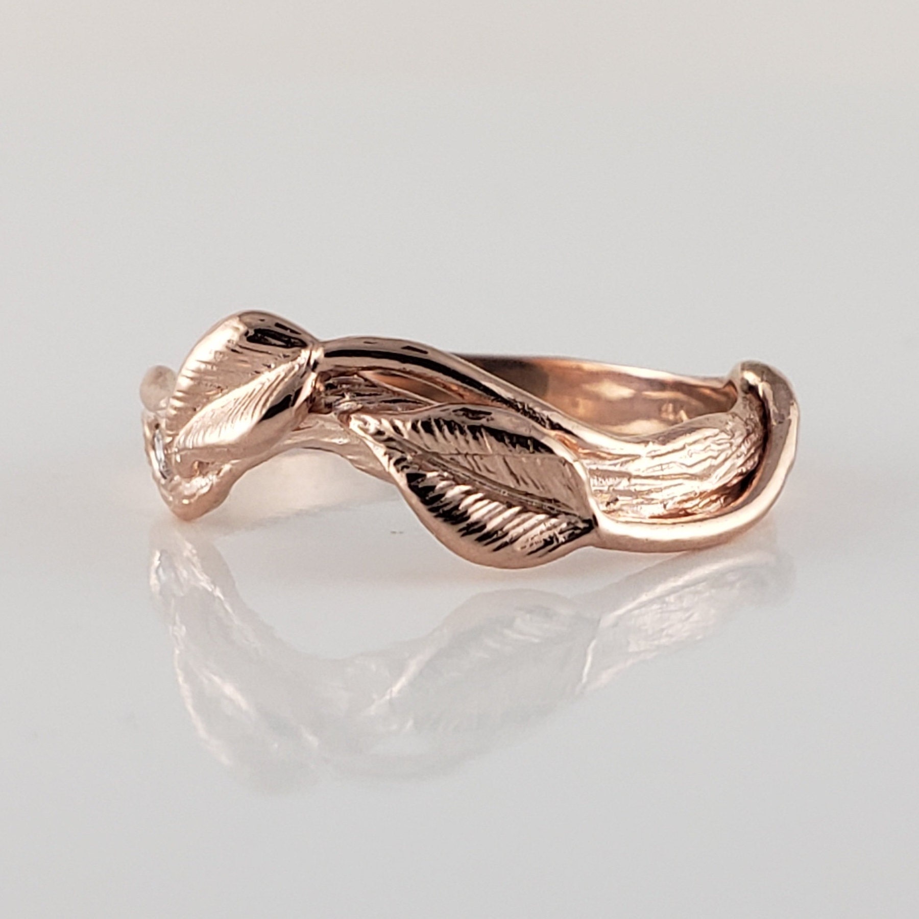 14k Rose Gold (shown) Leaf Engagement or Wedding Band hand sculpted by Dawn Vertrees