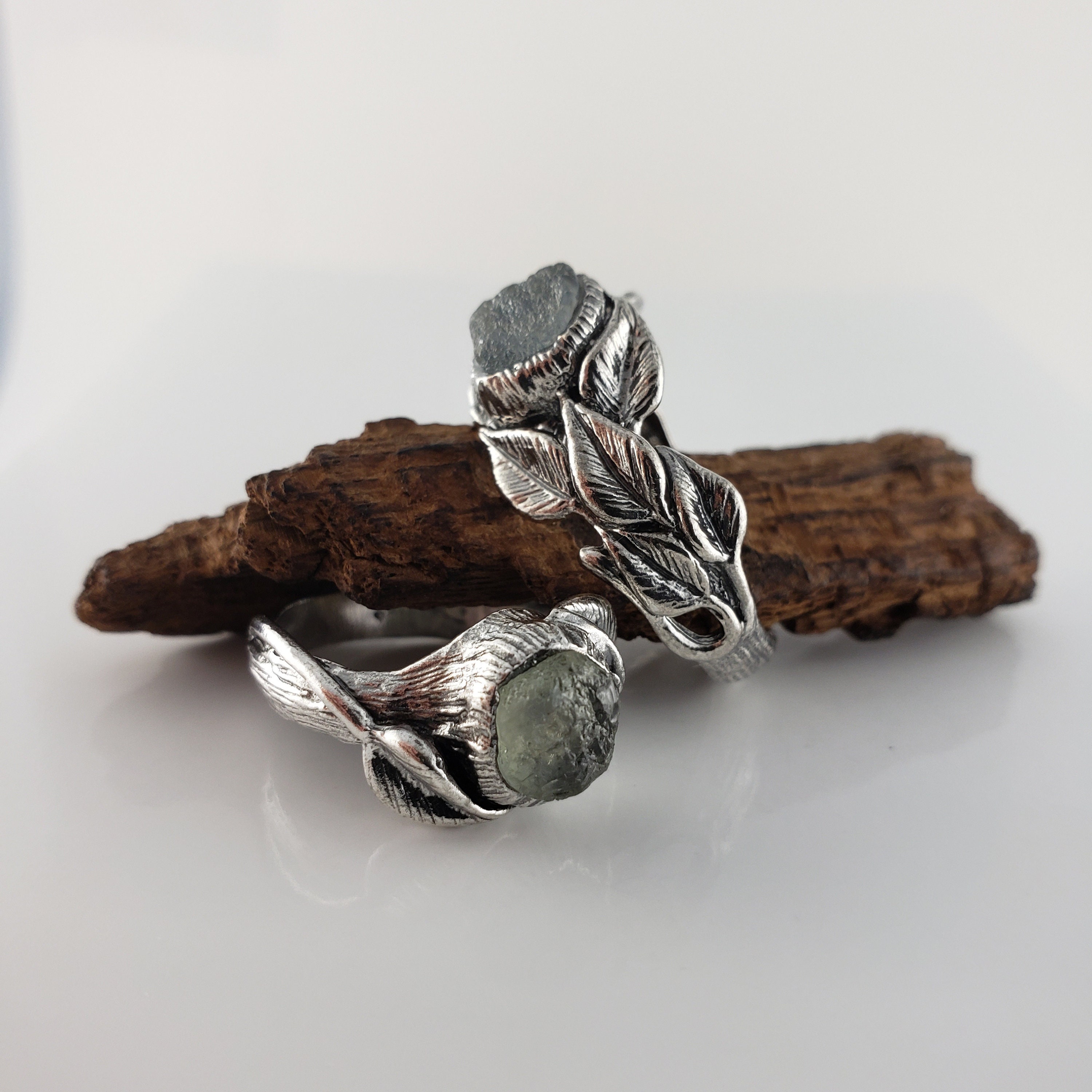 Leaf & Twig Rough Montana Sapphires Wedding Ring for Her, Engagement Ring, Bridal Set by DV Designs