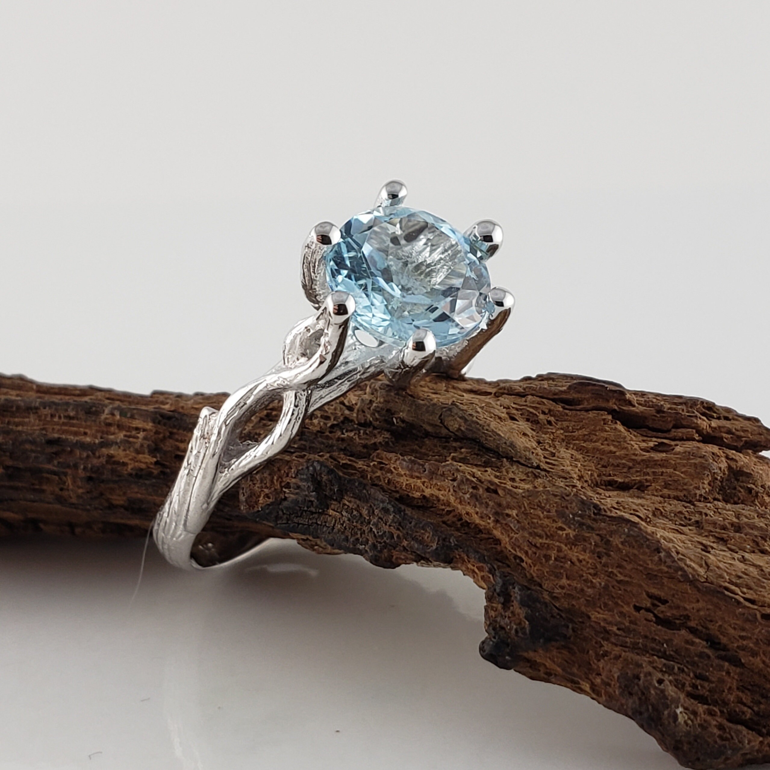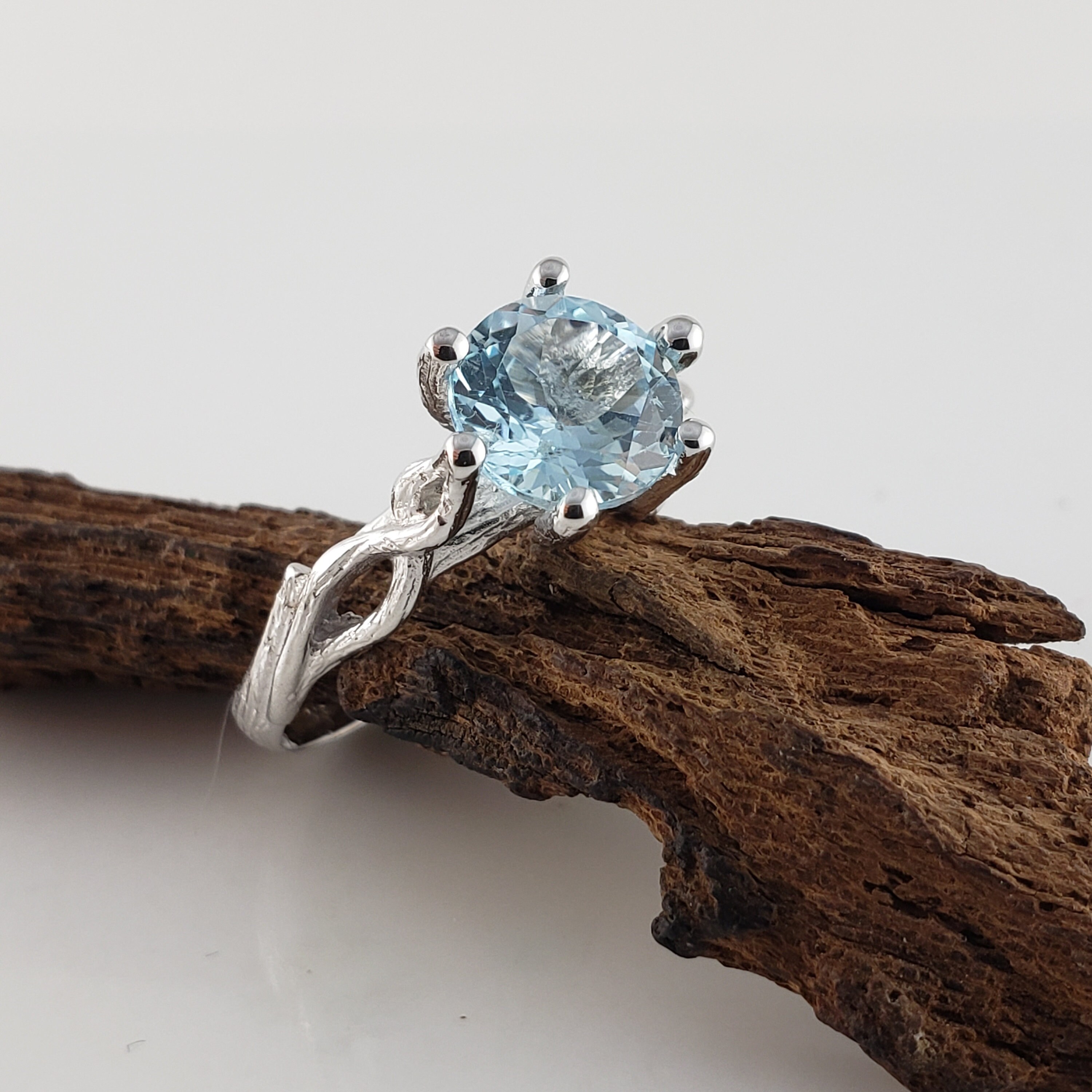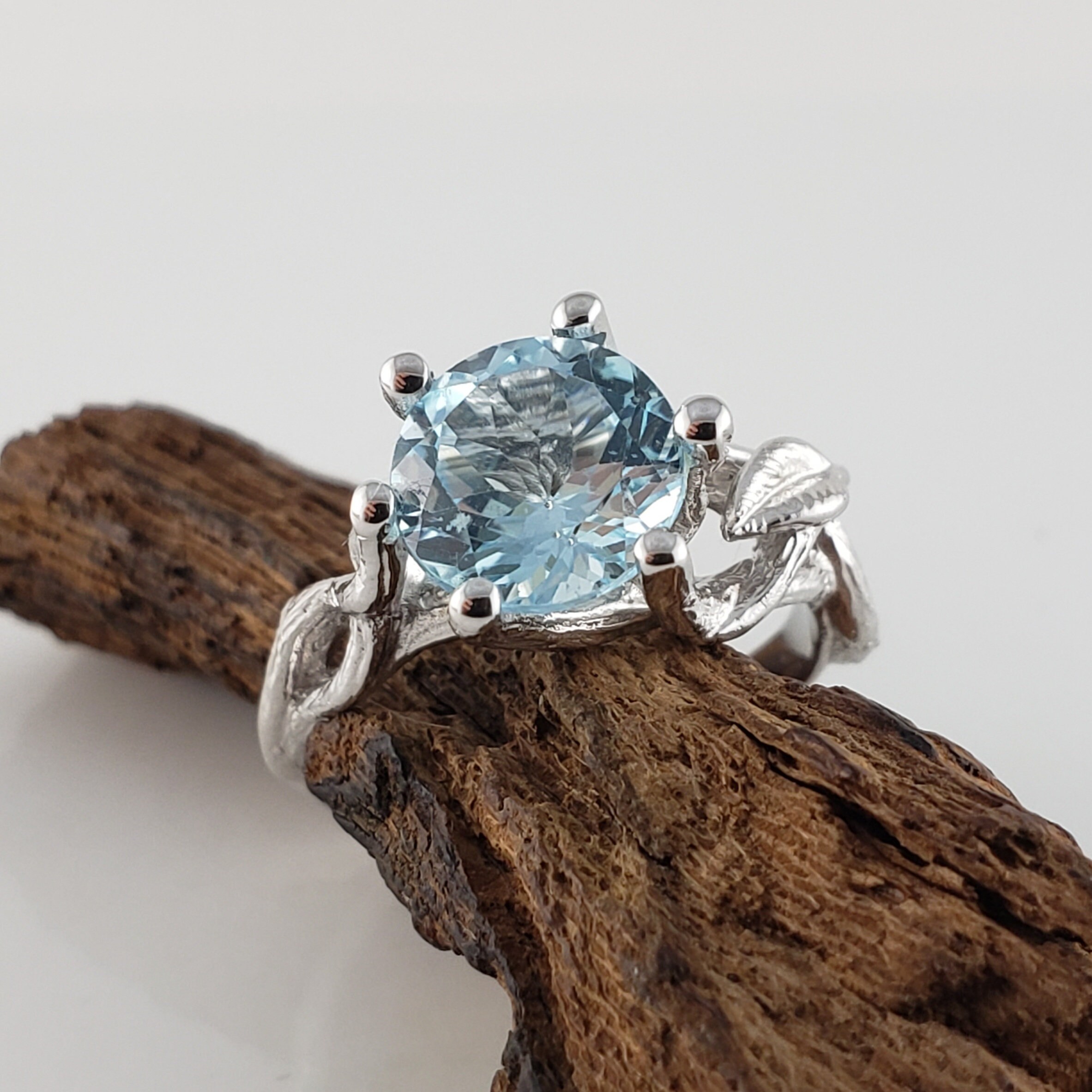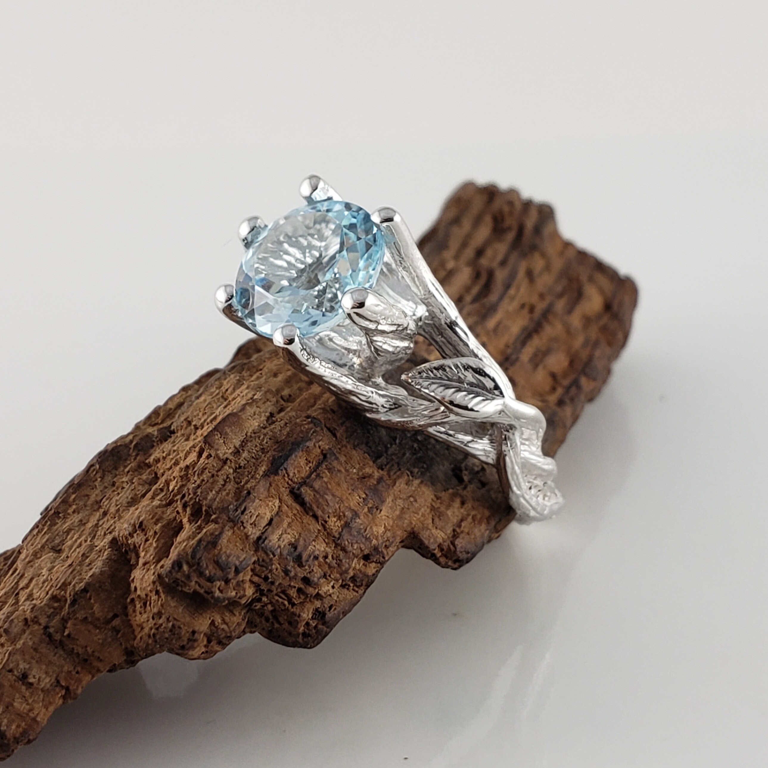 Faceted 1.75ct Aquamarine 14k White Gold Leaf, Twig and Vine Engagement Ring