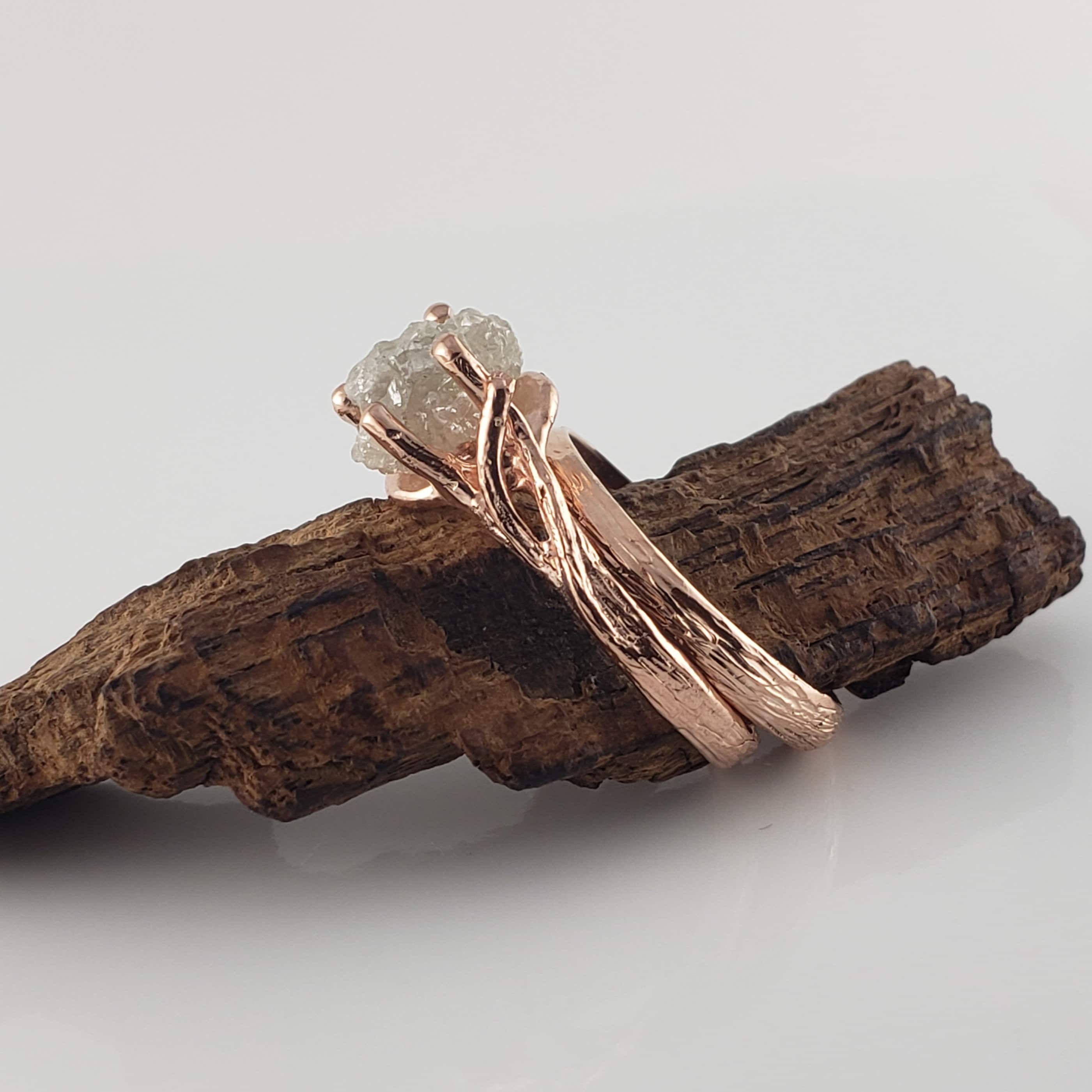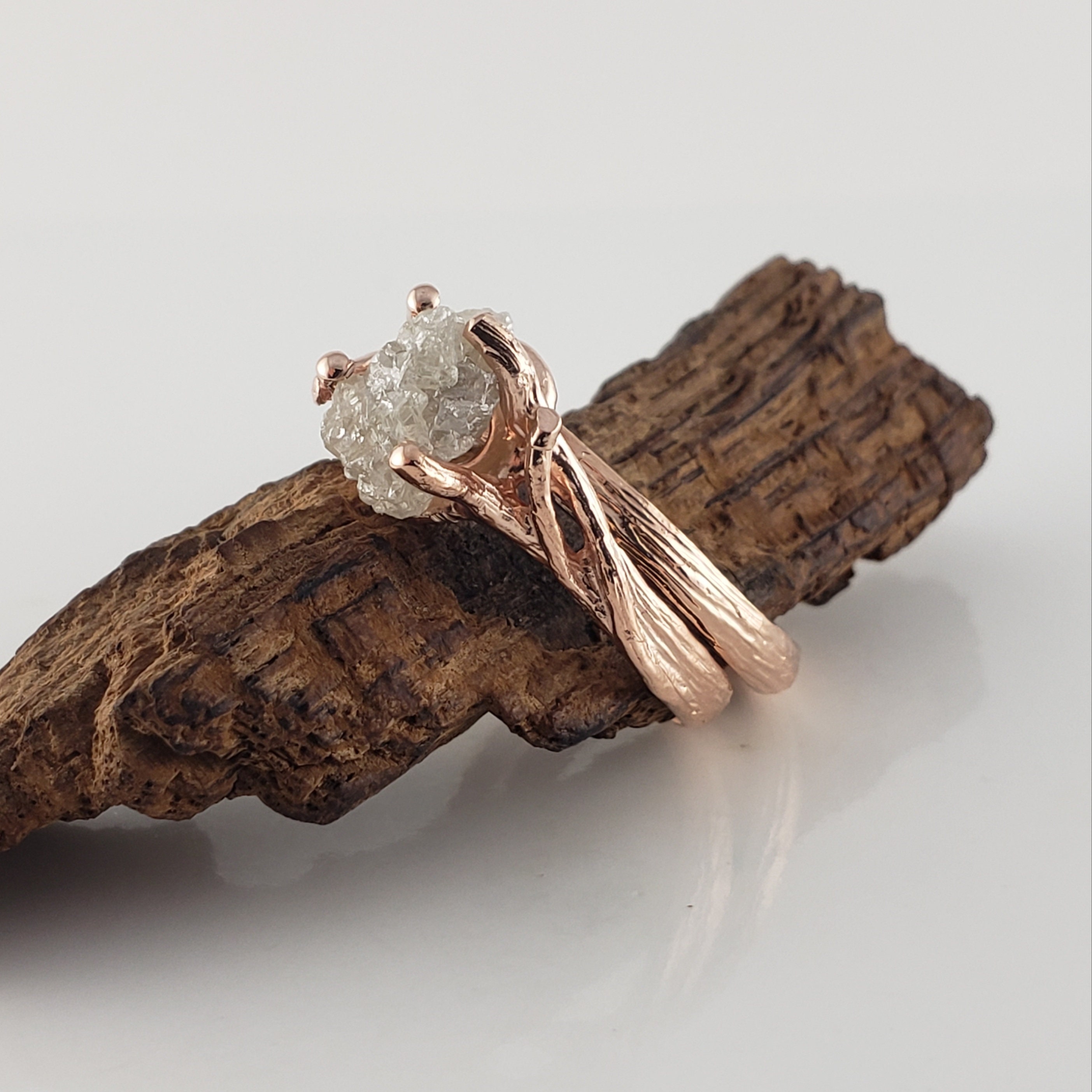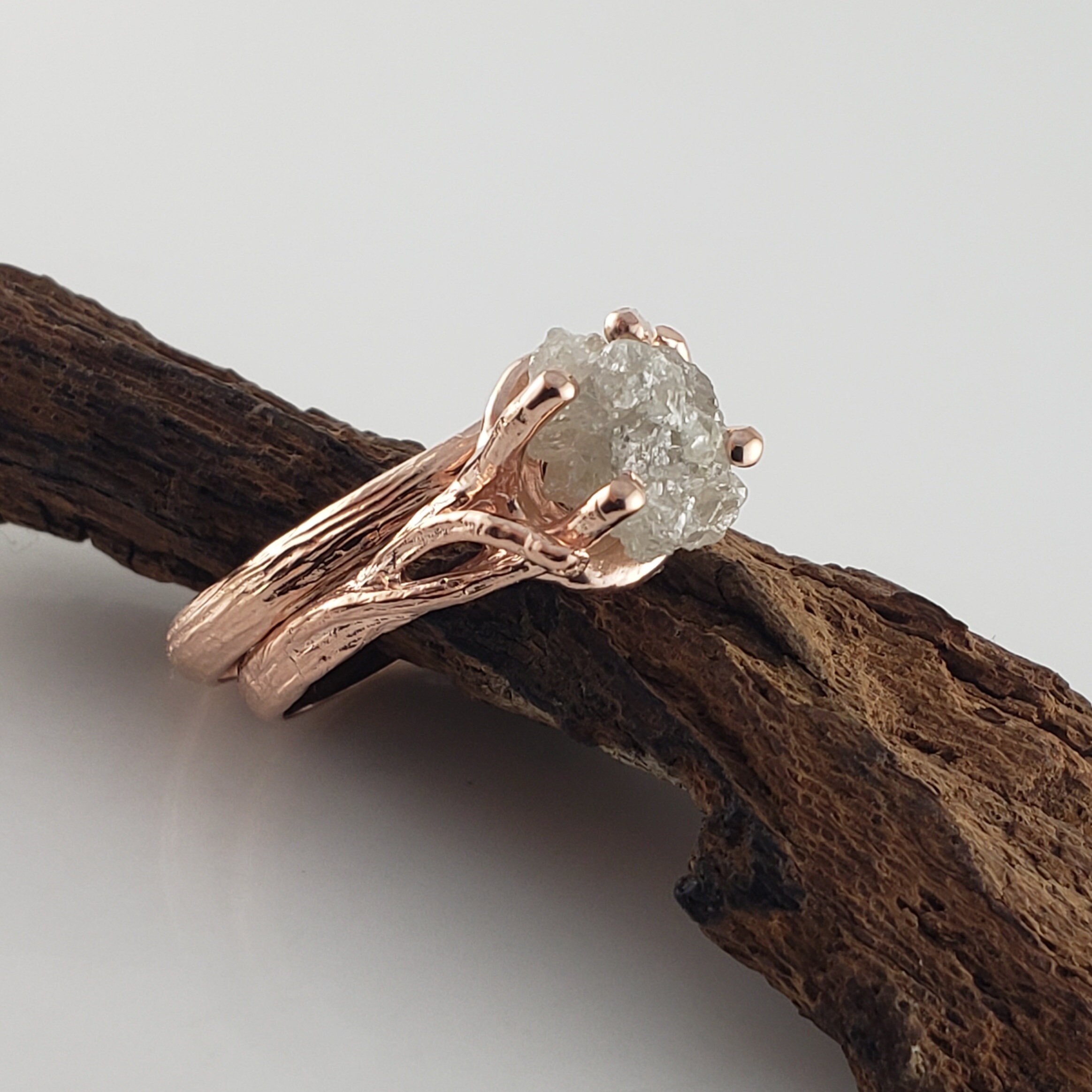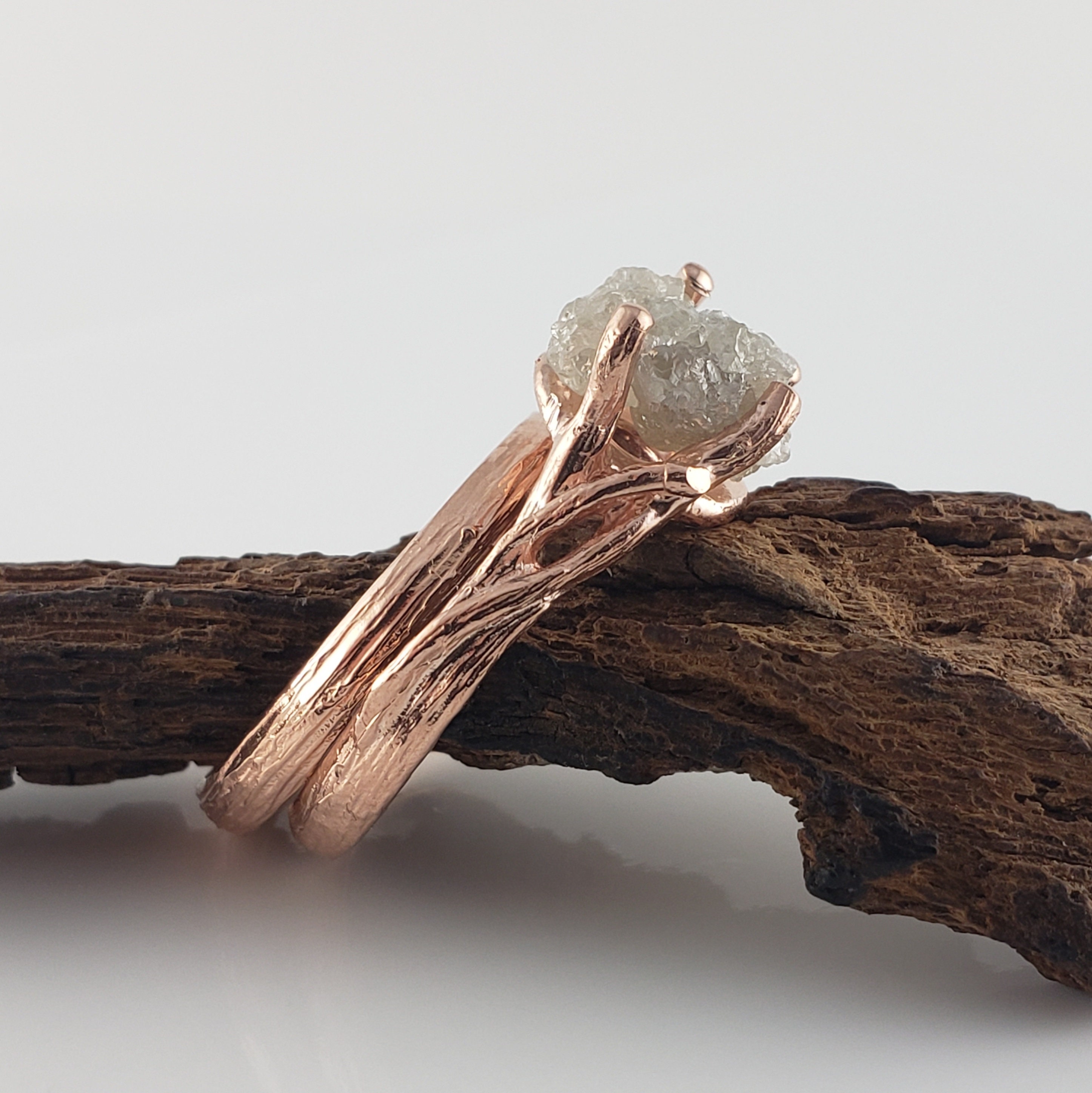 Alternative Woodland Engagement Ring, Hand-Sculpted Twig Design Wedding Rings, Solid Gold Crossover Band by DV Jewelry Designs