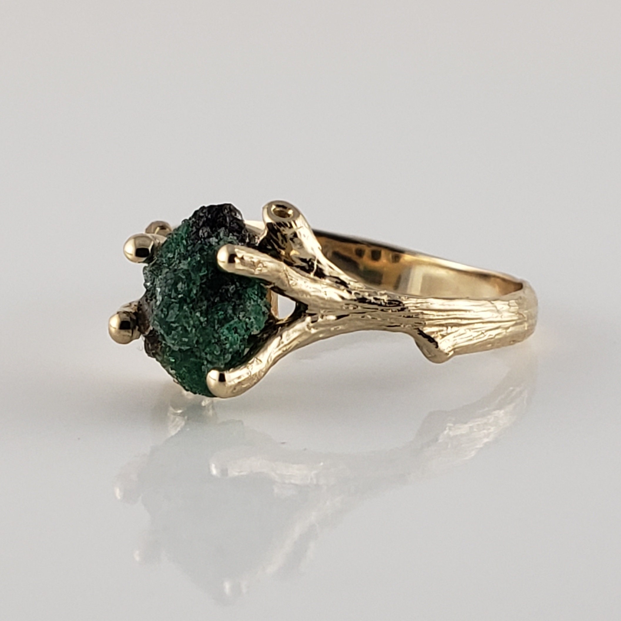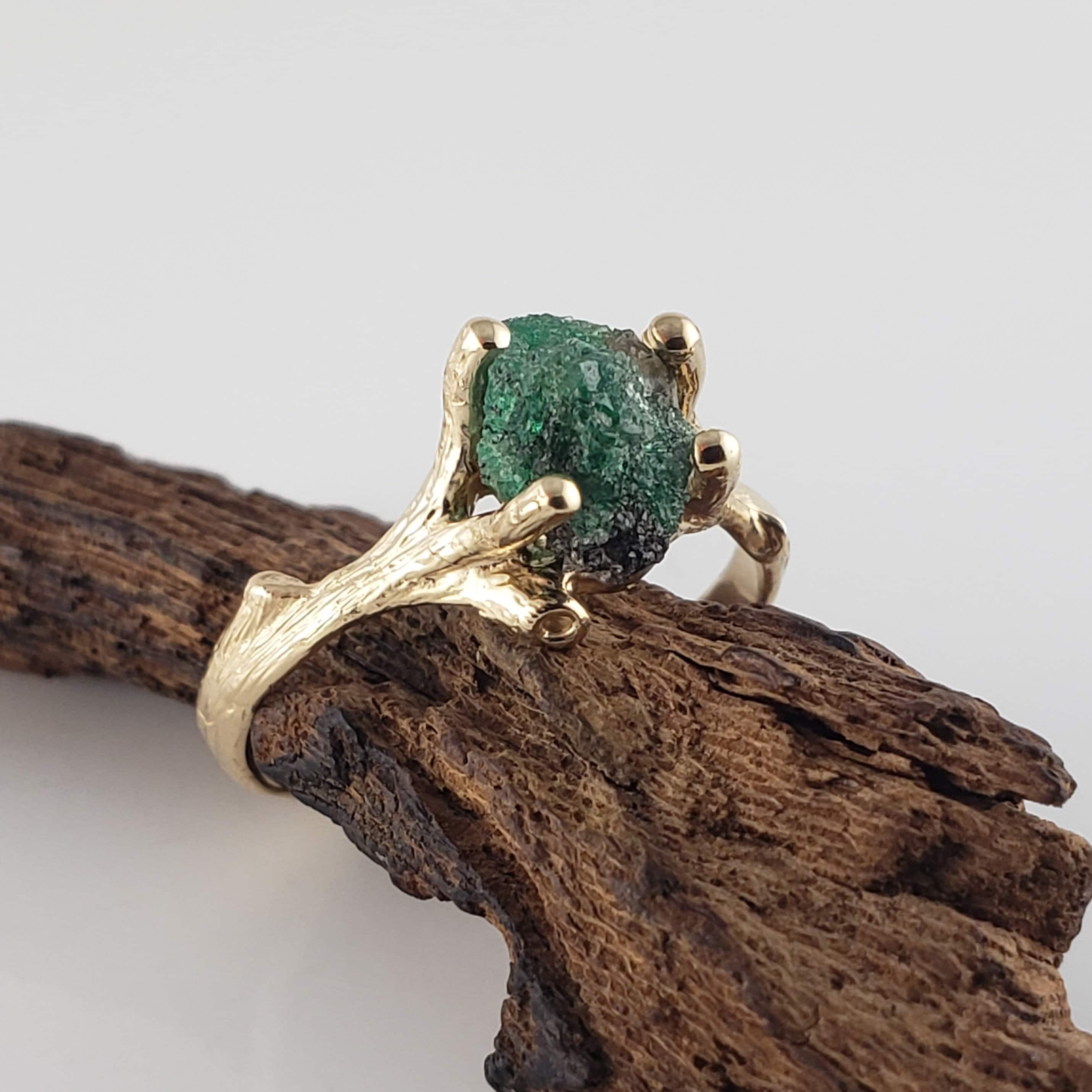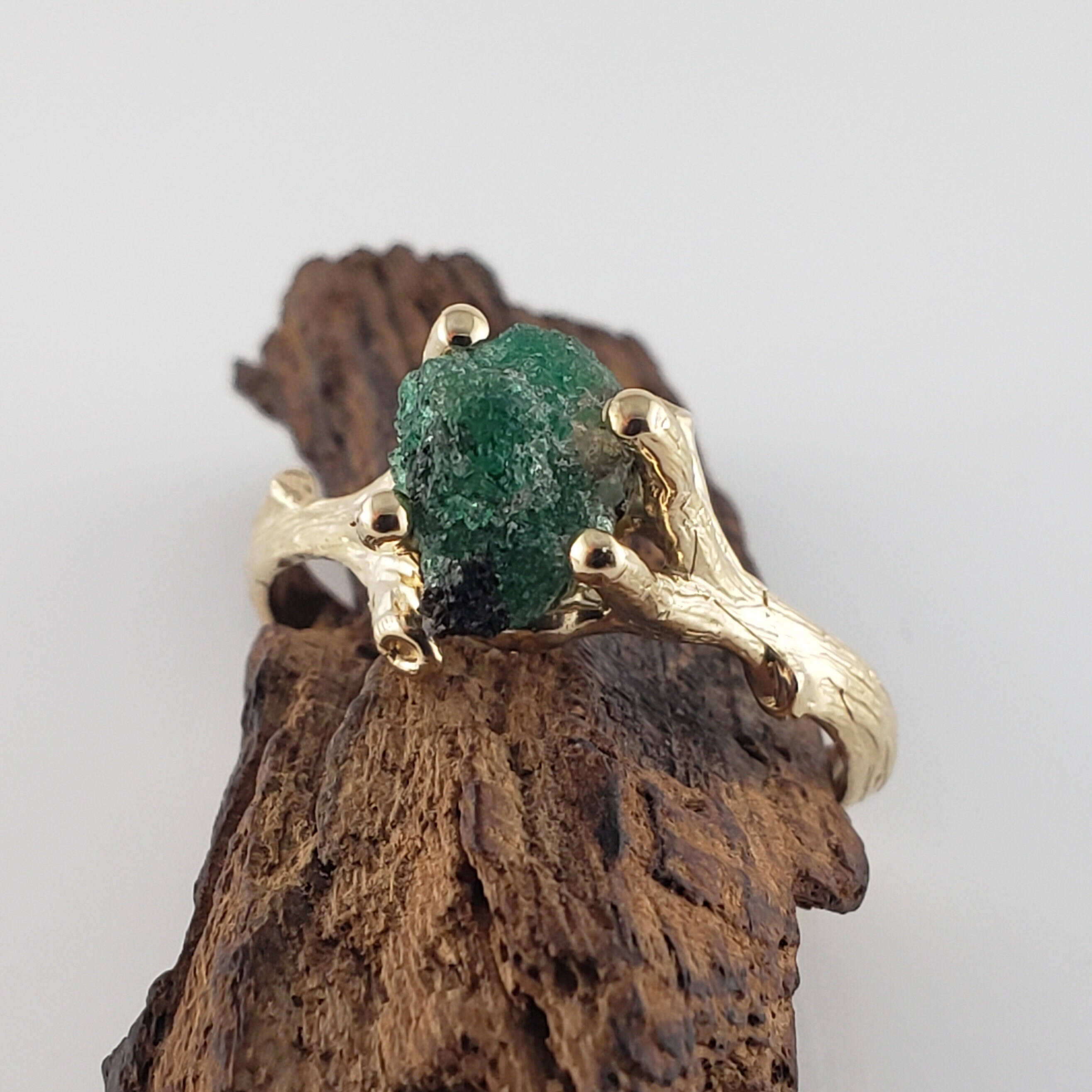 14k Yellow Gold Raw Emerald Engagement Ring - Genuine Emerald Ring - Hand-sculpted by Dawn V