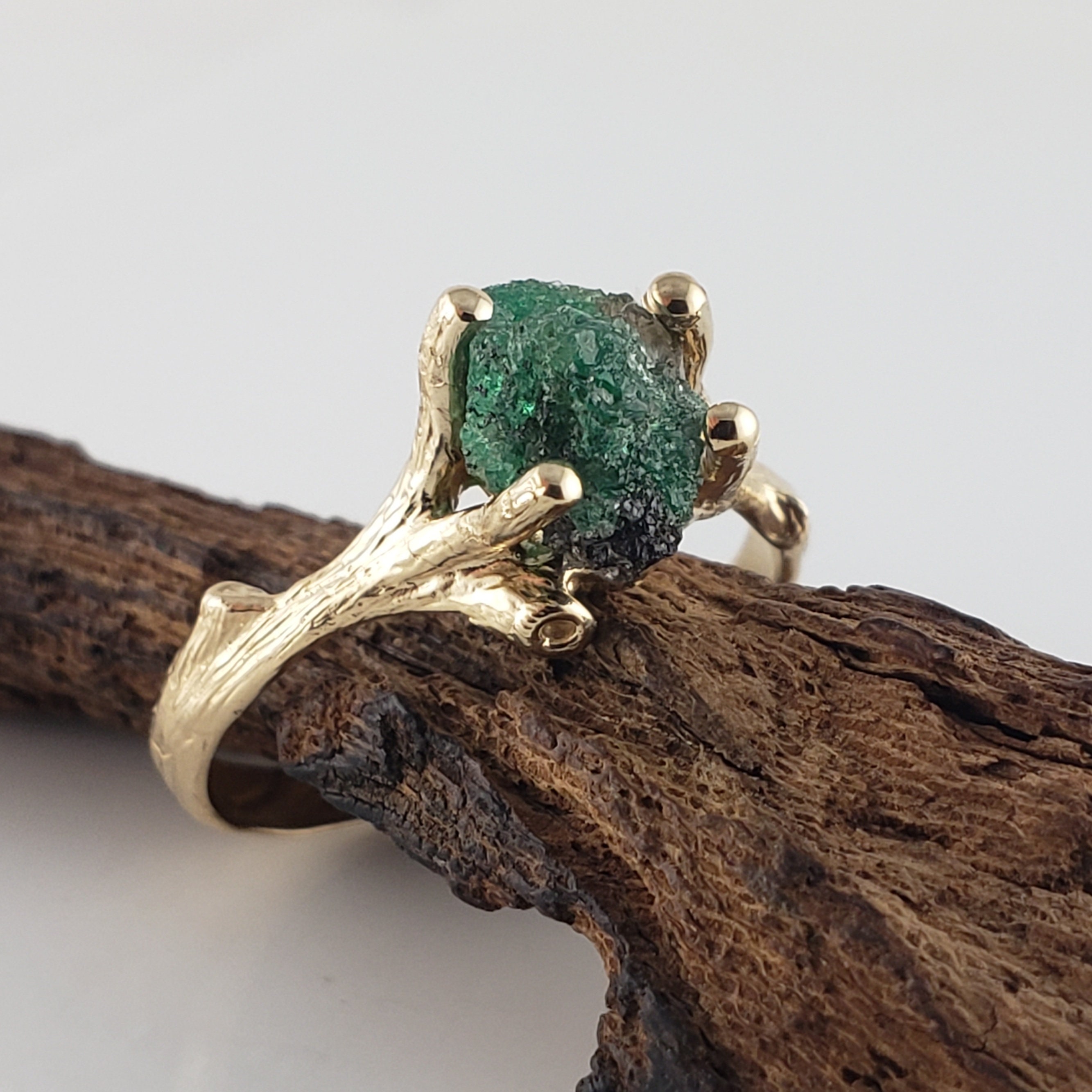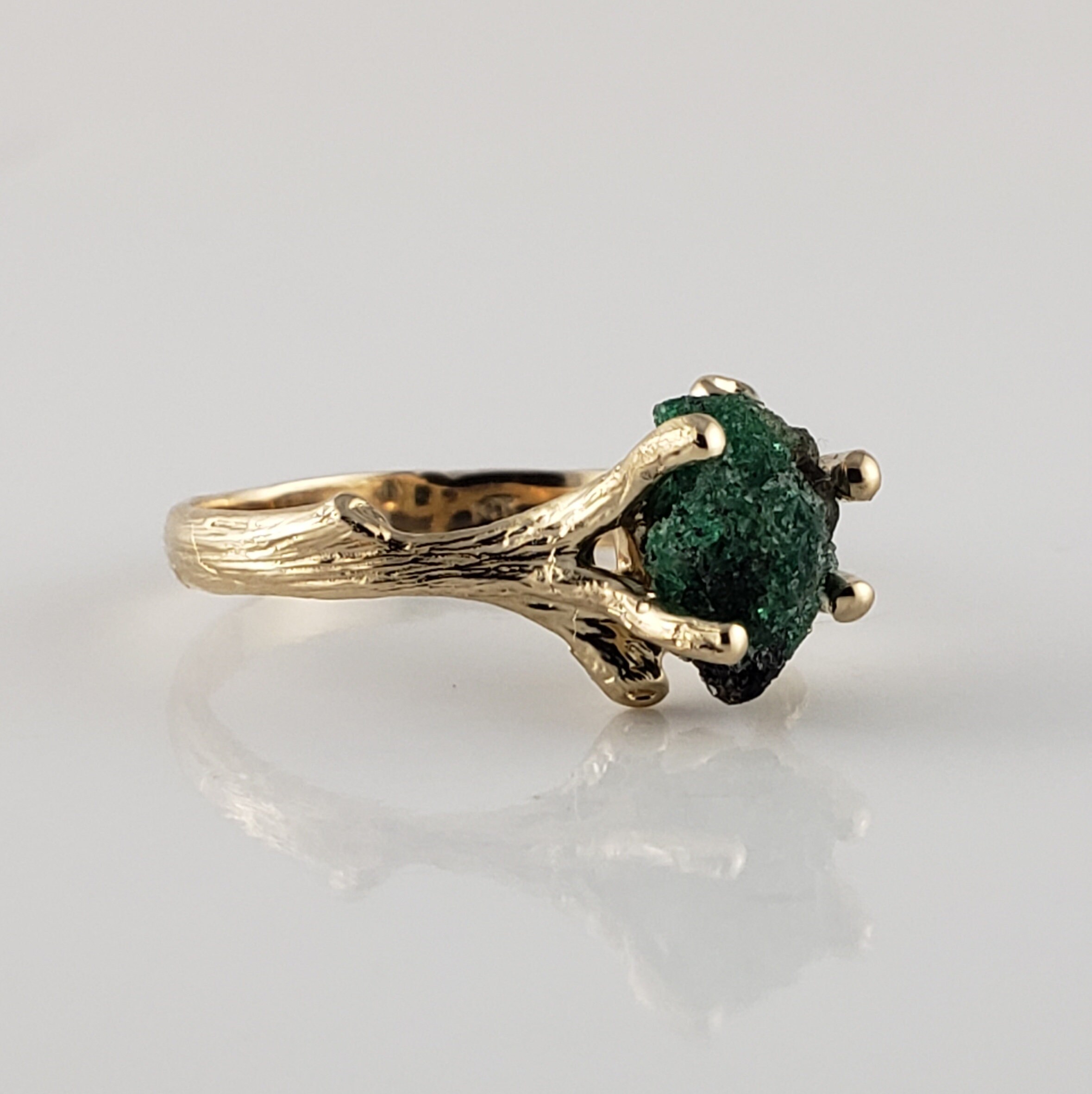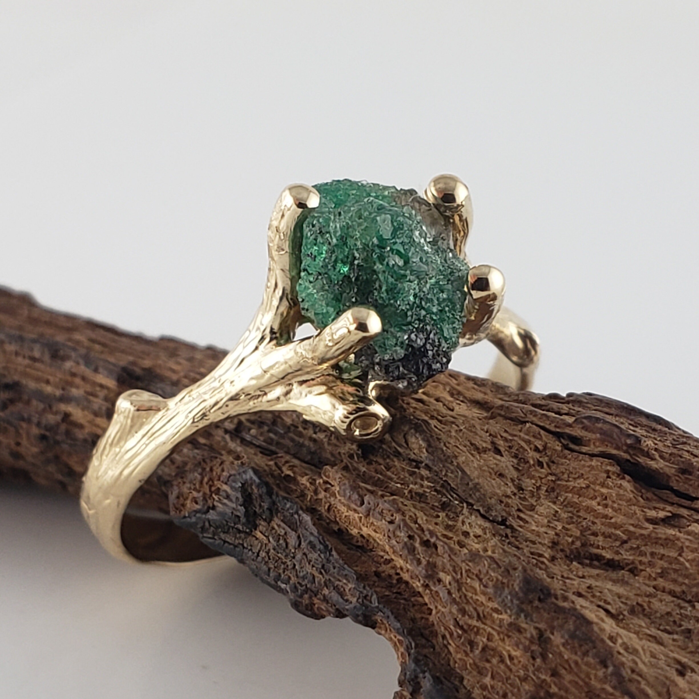 14k Yellow Gold Raw Emerald Engagement Ring - Genuine Emerald Ring - Hand-sculpted by Dawn V