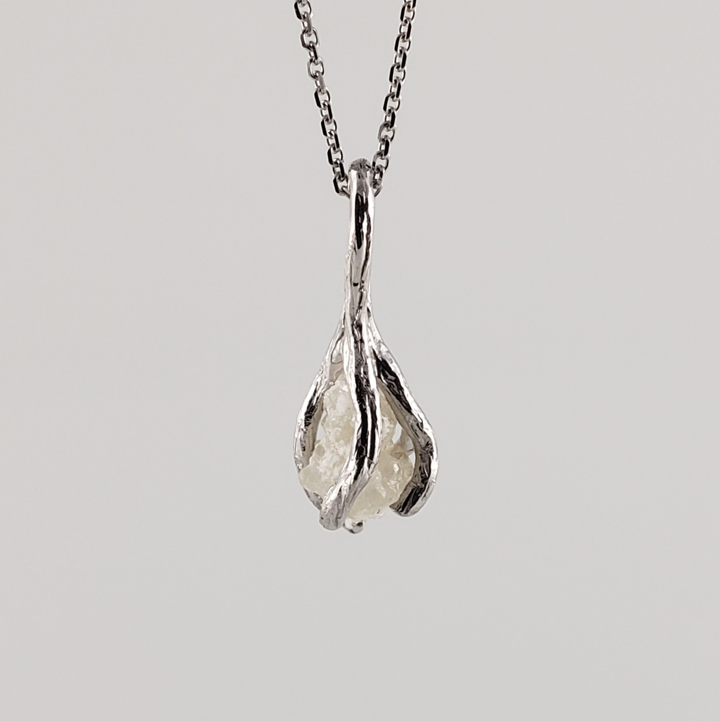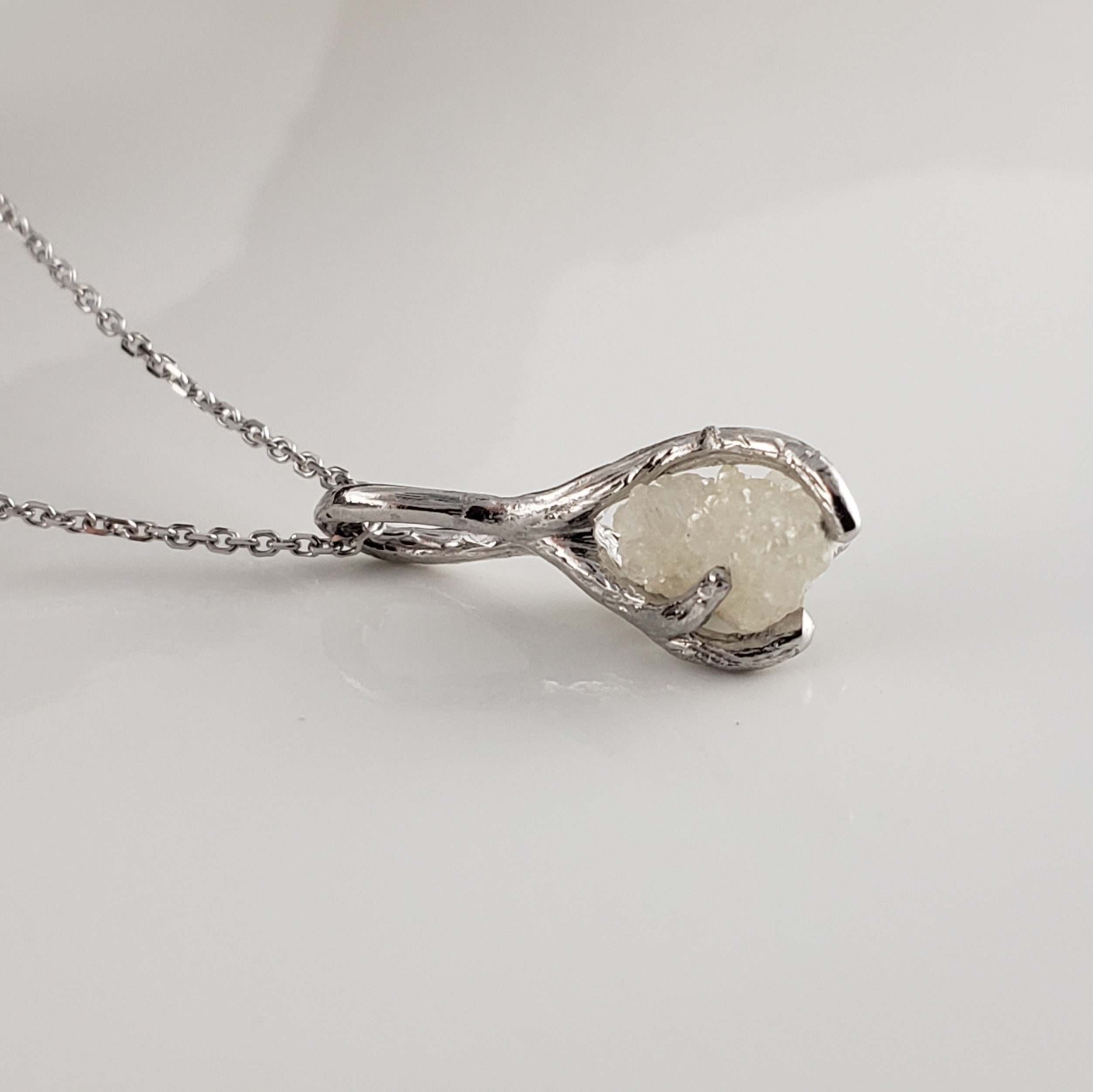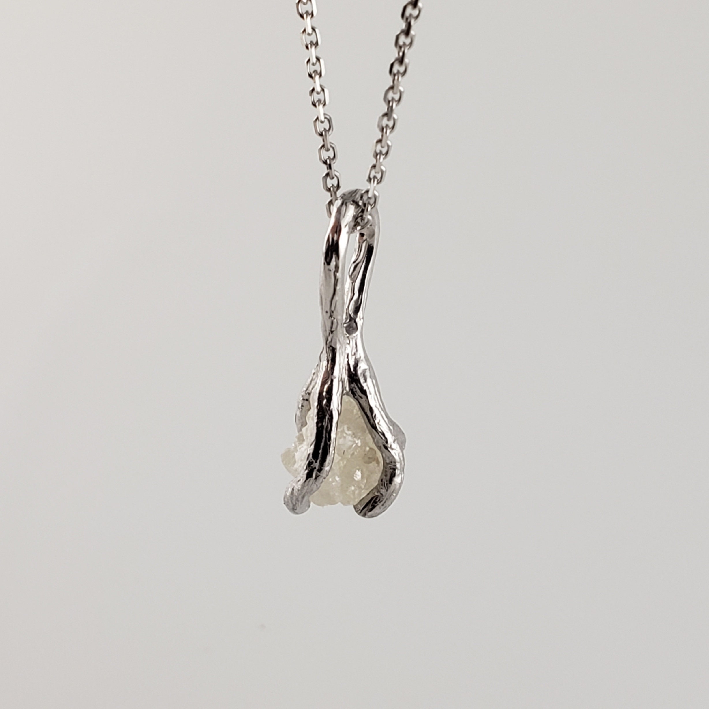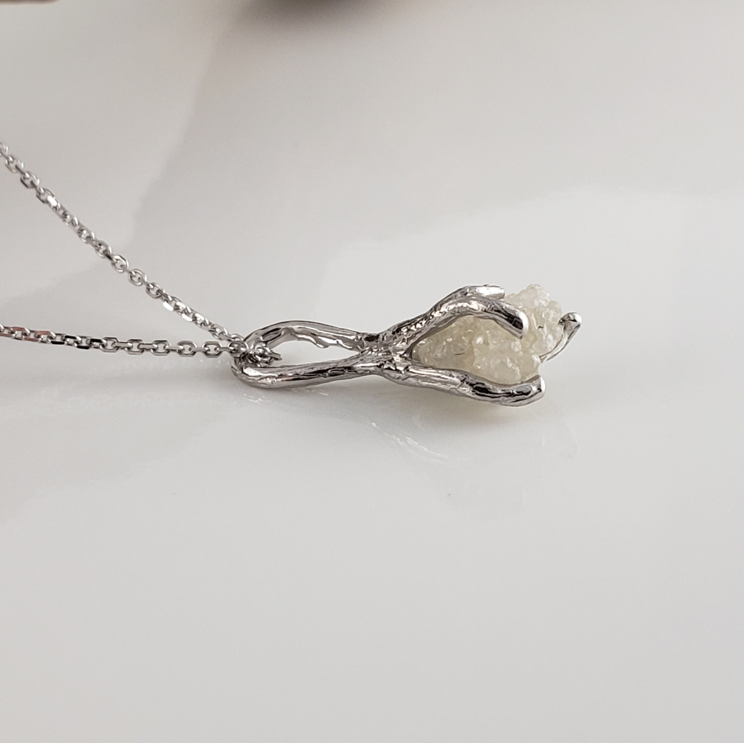 Hand-sculpted Twig branches holding a 1.5-carat rough diamond. This necklace was designed to match my Twig and Leaf Collection.