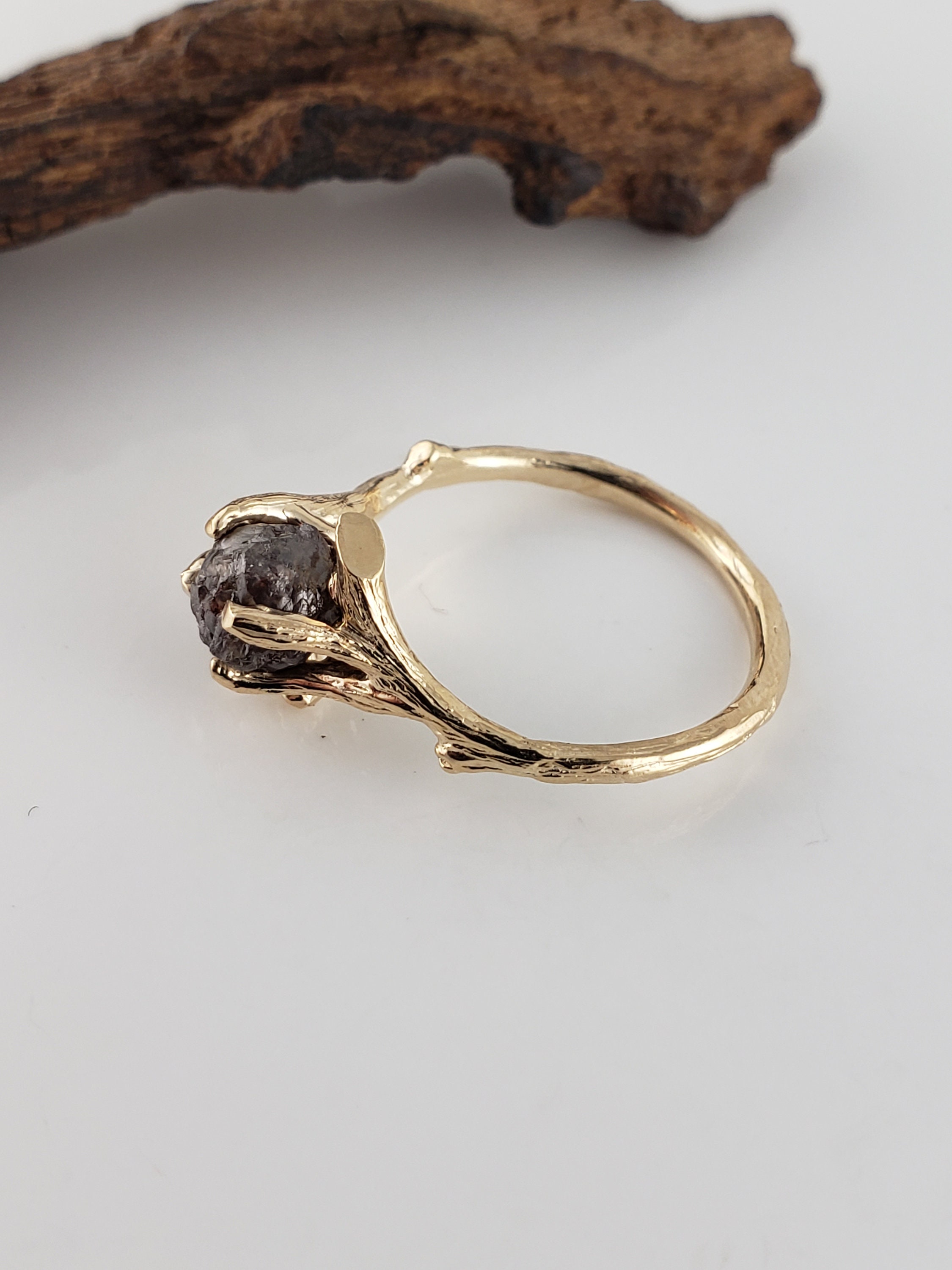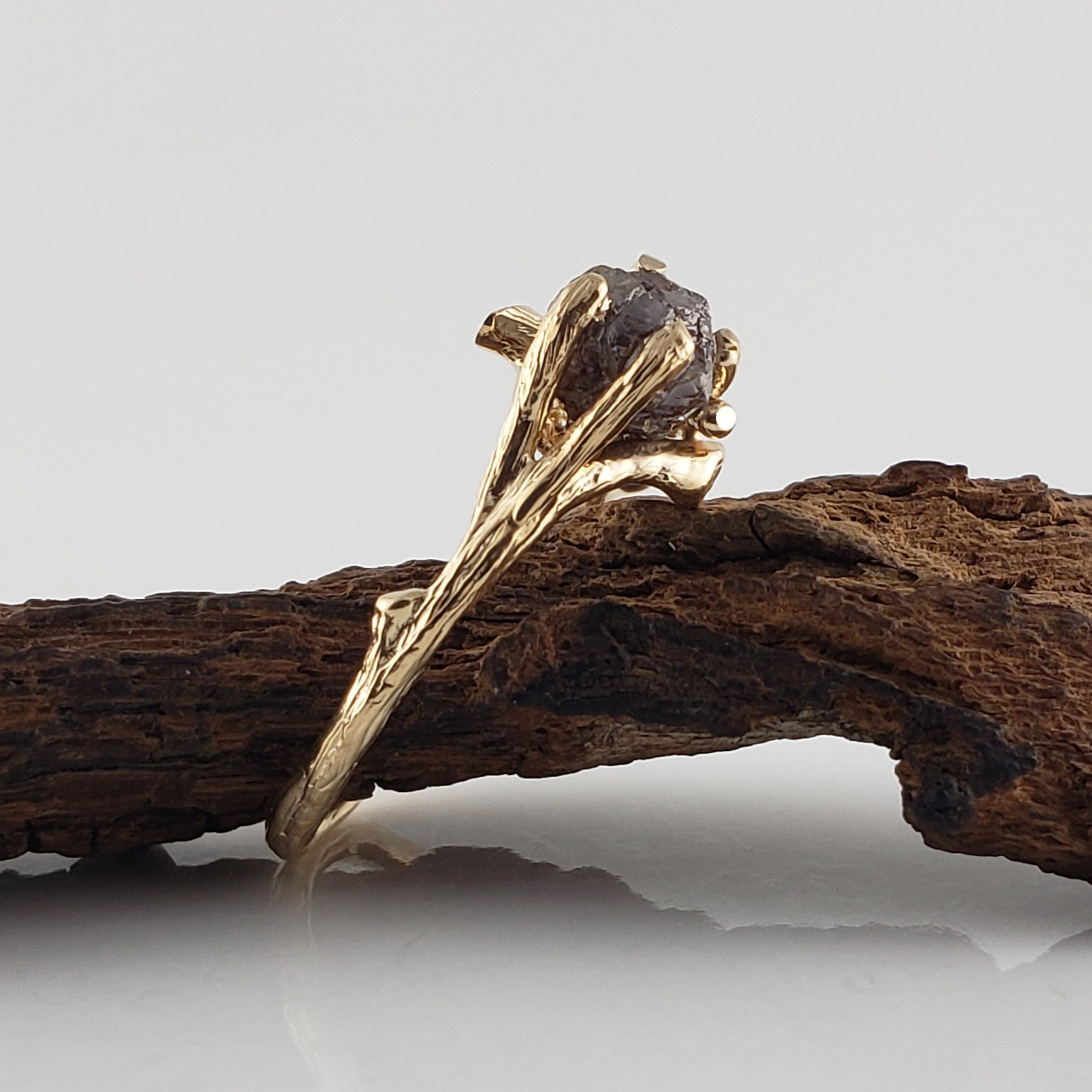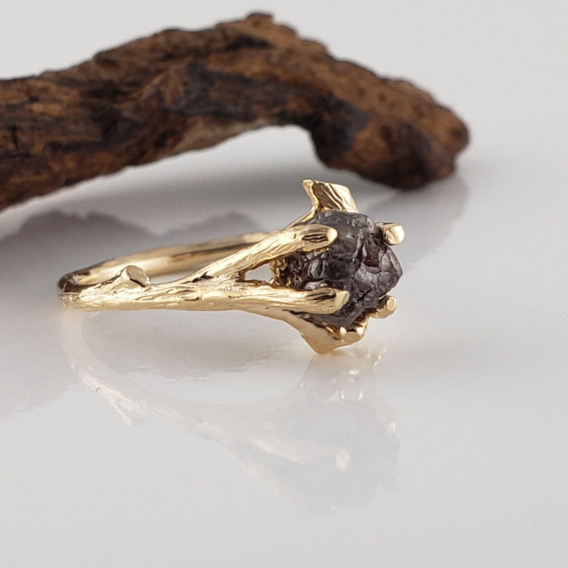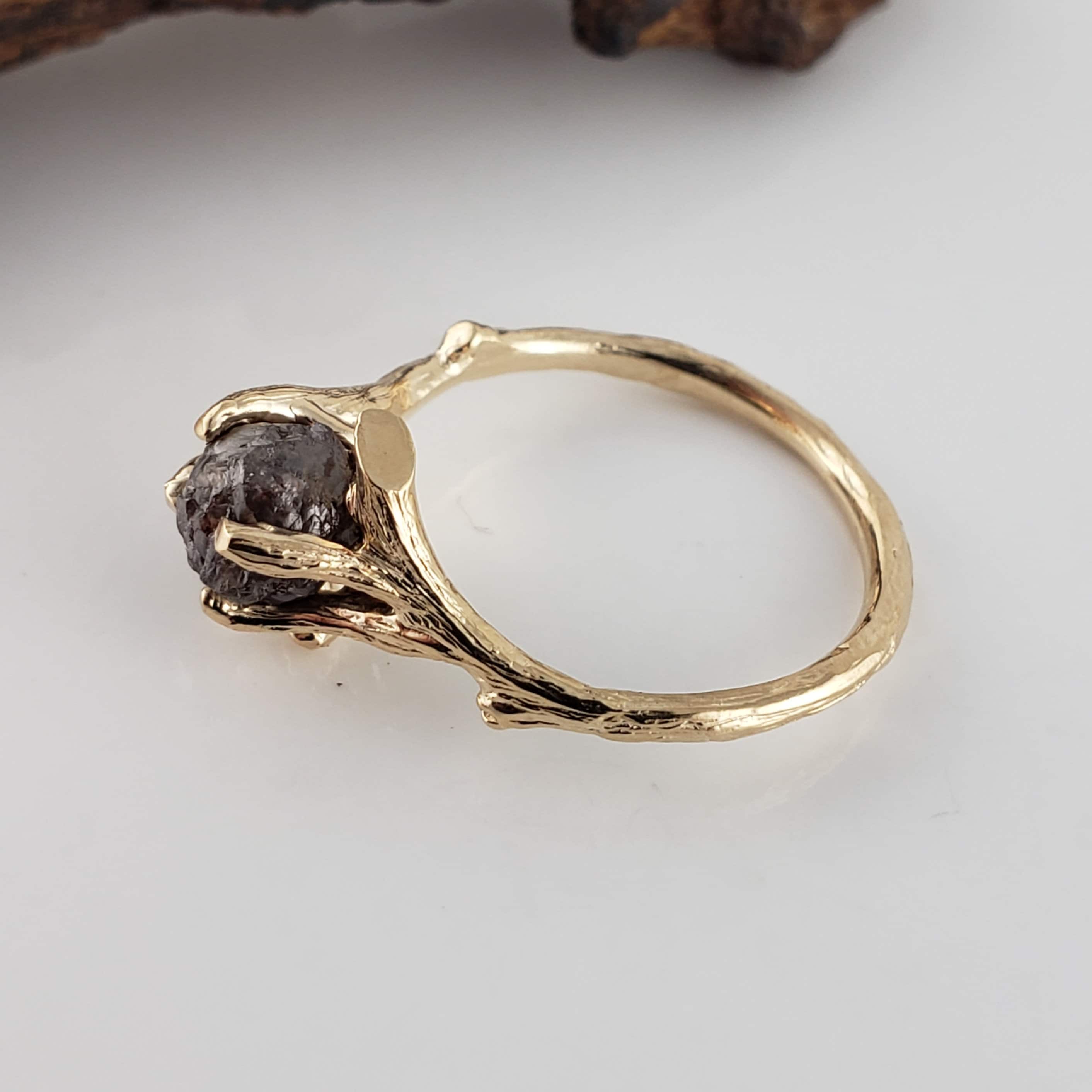 Rough Uncut Black Raw Diamond, 14k Yellow Gold, Twig Wedding Ring, Engagement Rings by Dawn Vertrees