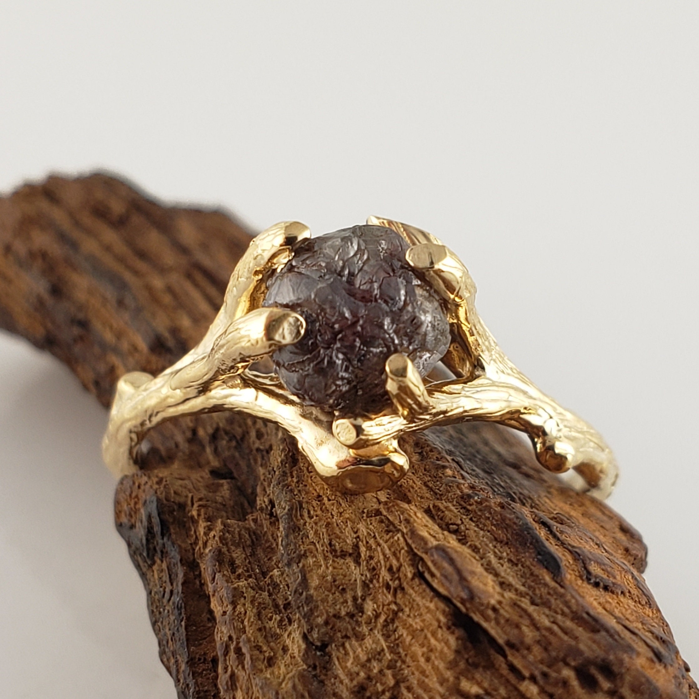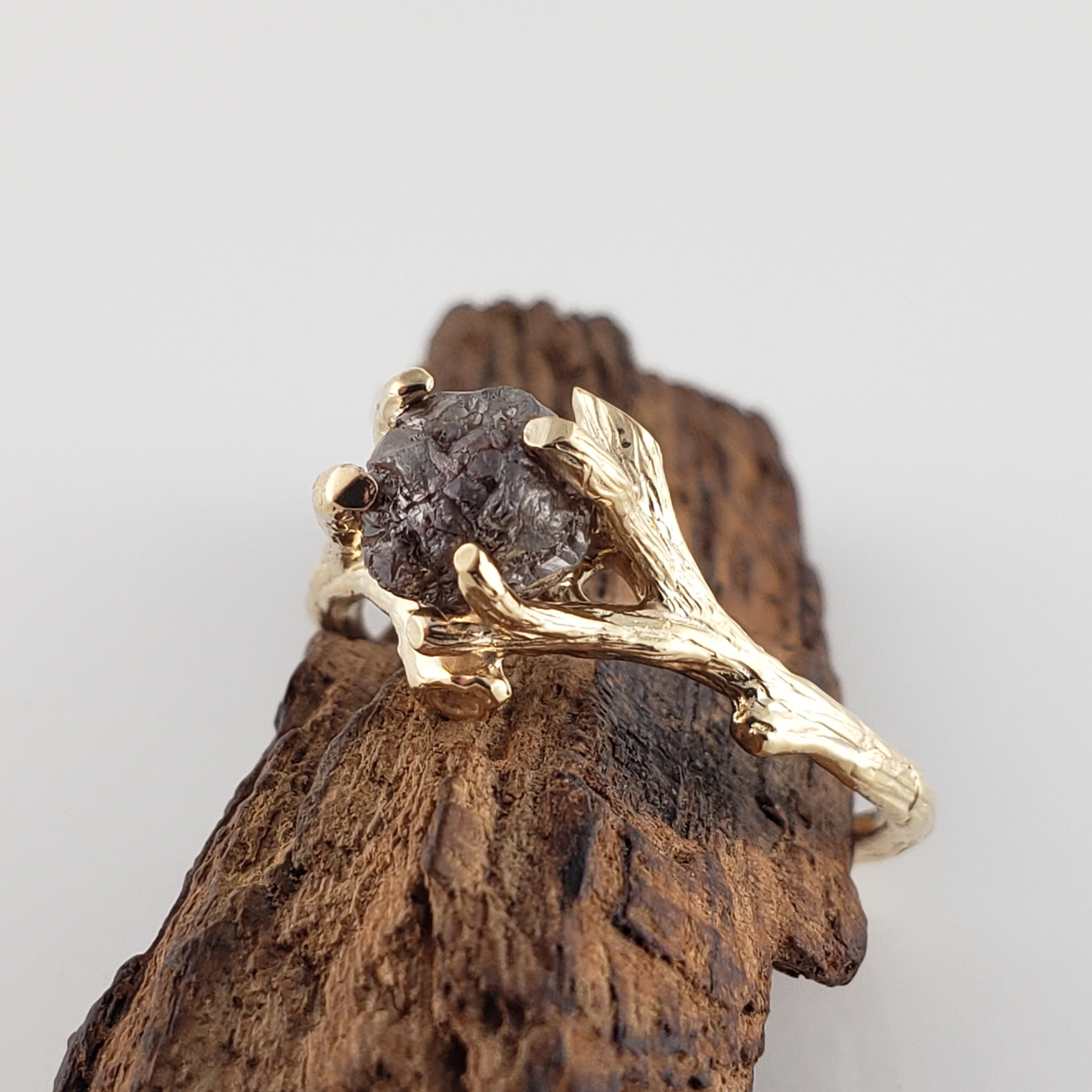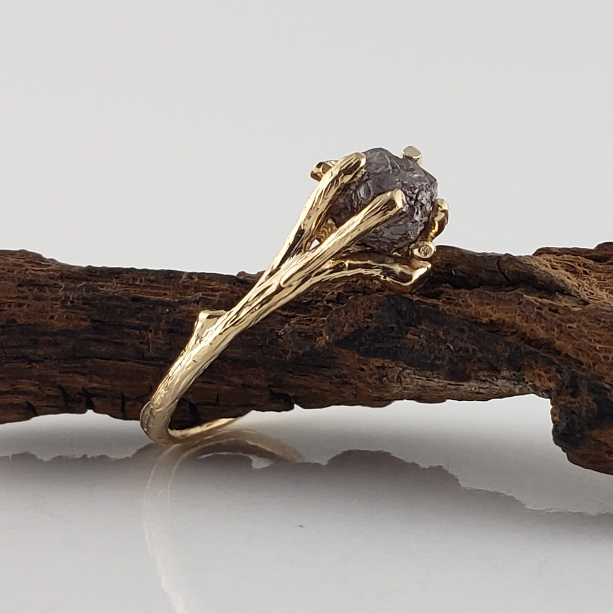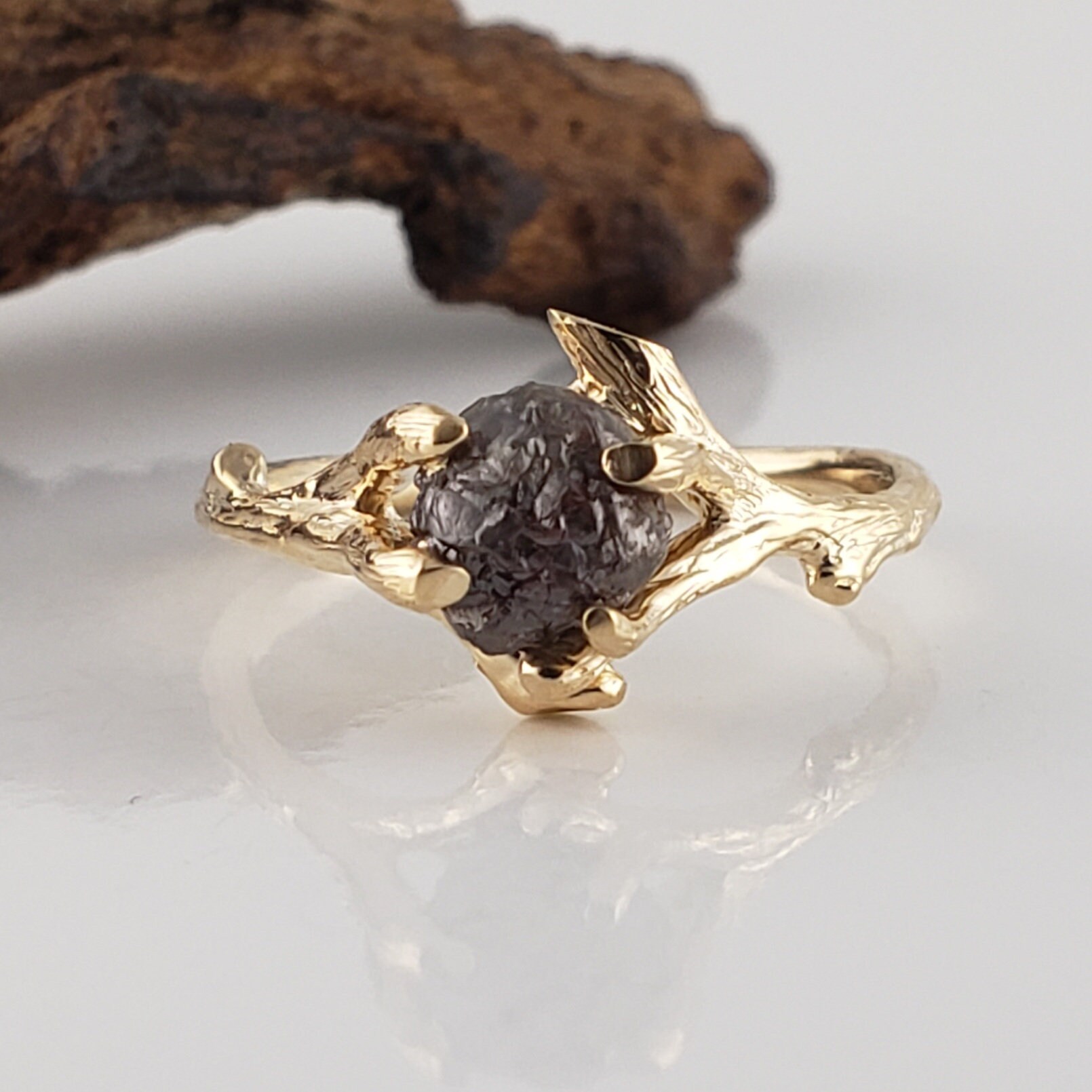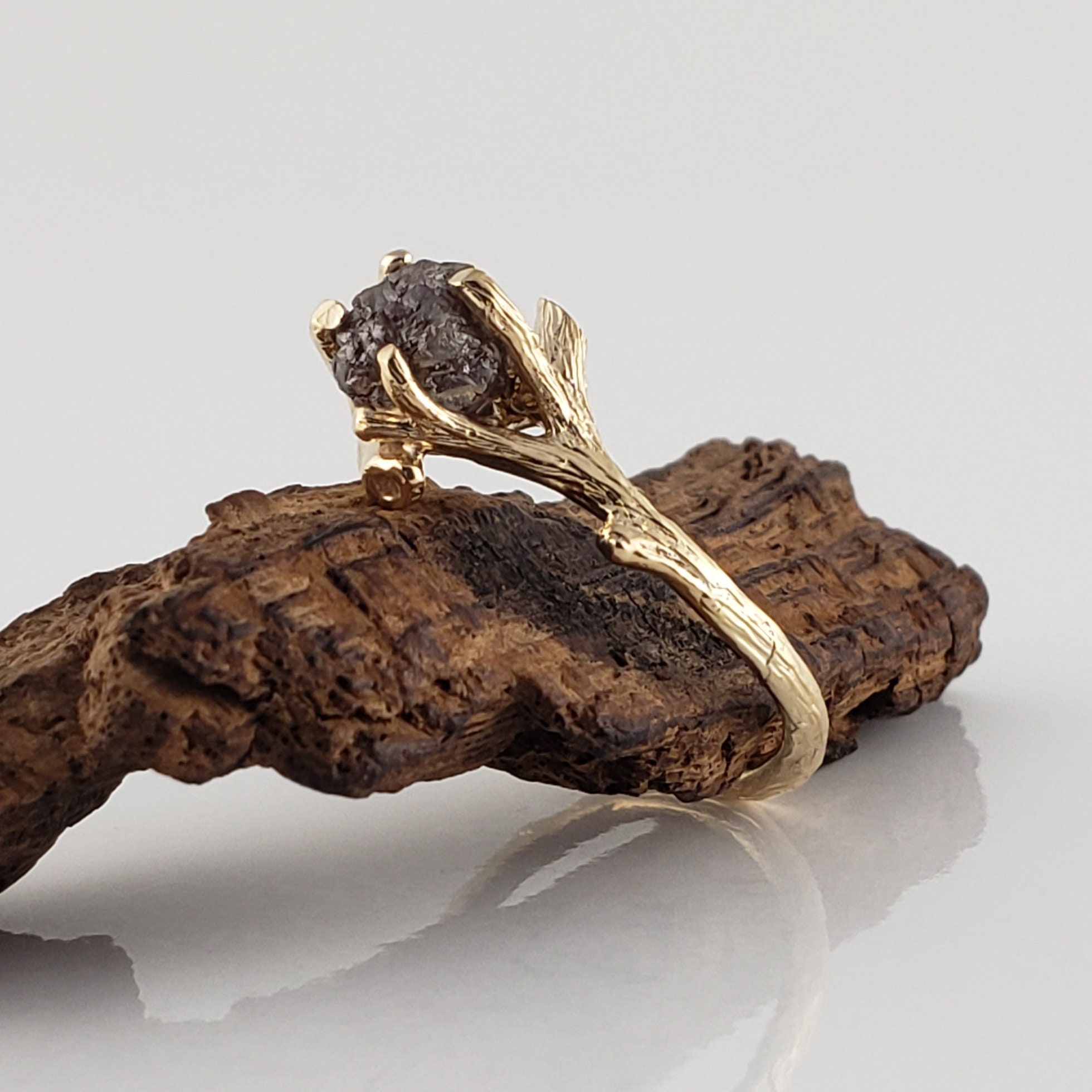 Rough Uncut Black Raw Diamond, 14k Yellow Gold, Twig Wedding Ring, Engagement Rings by Dawn Vertrees