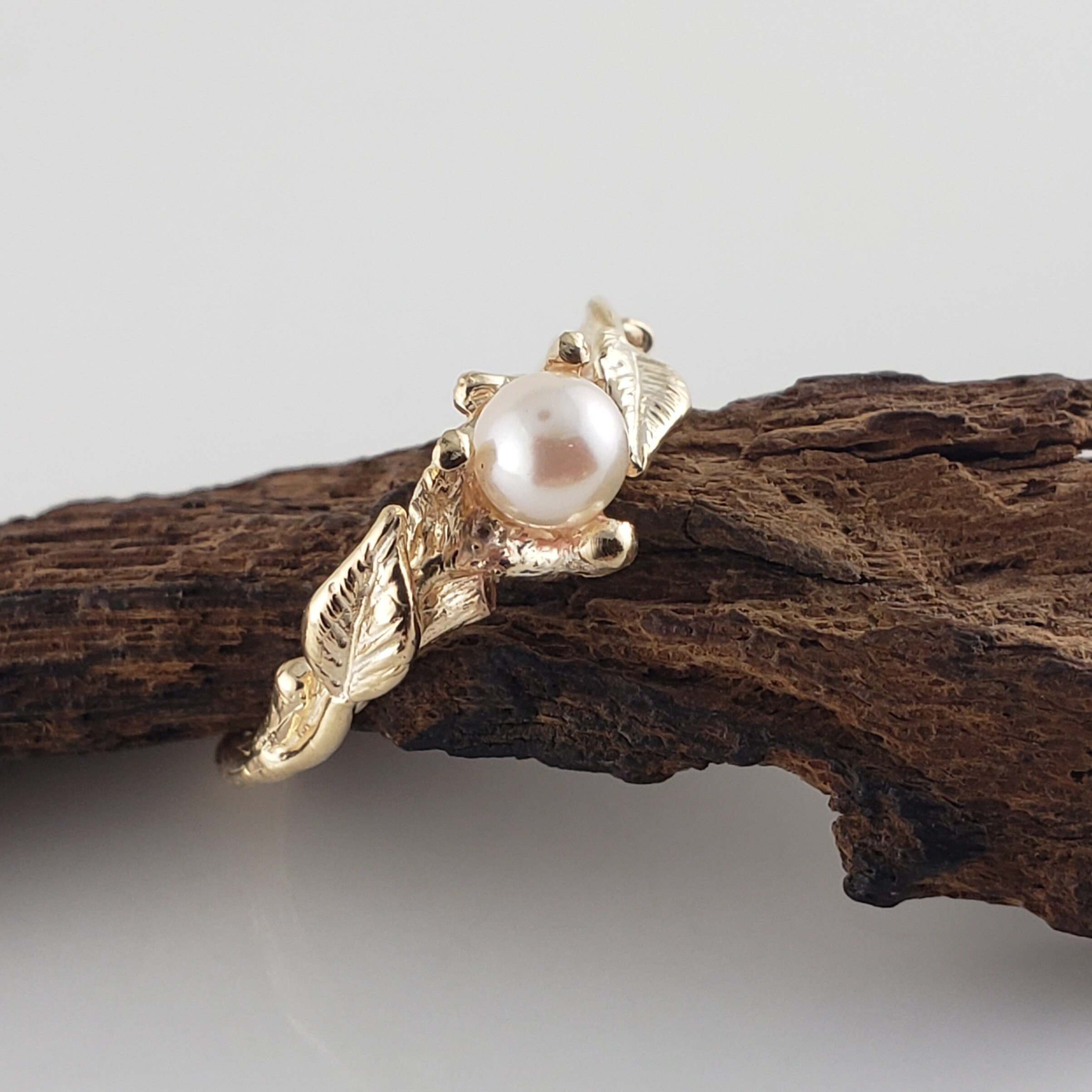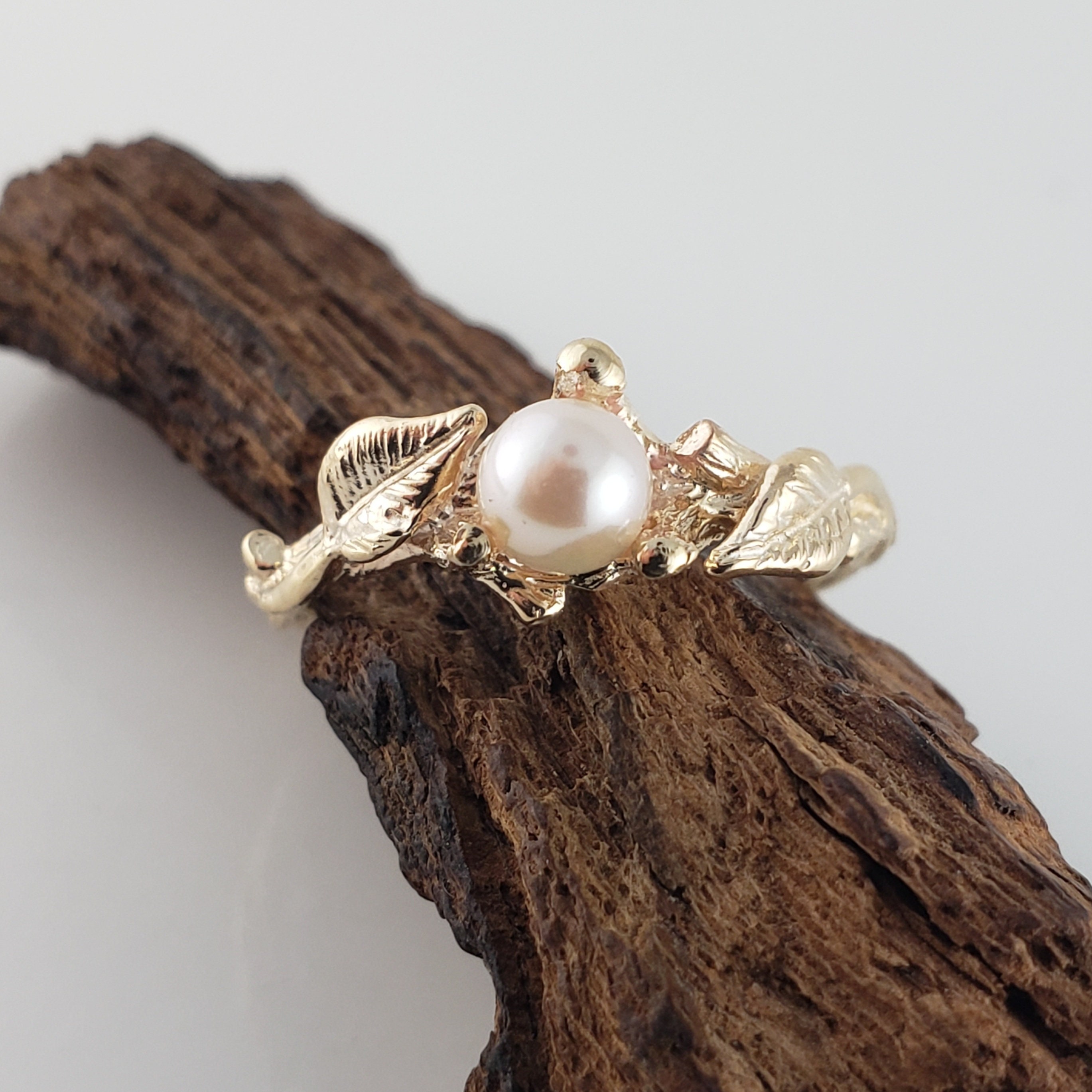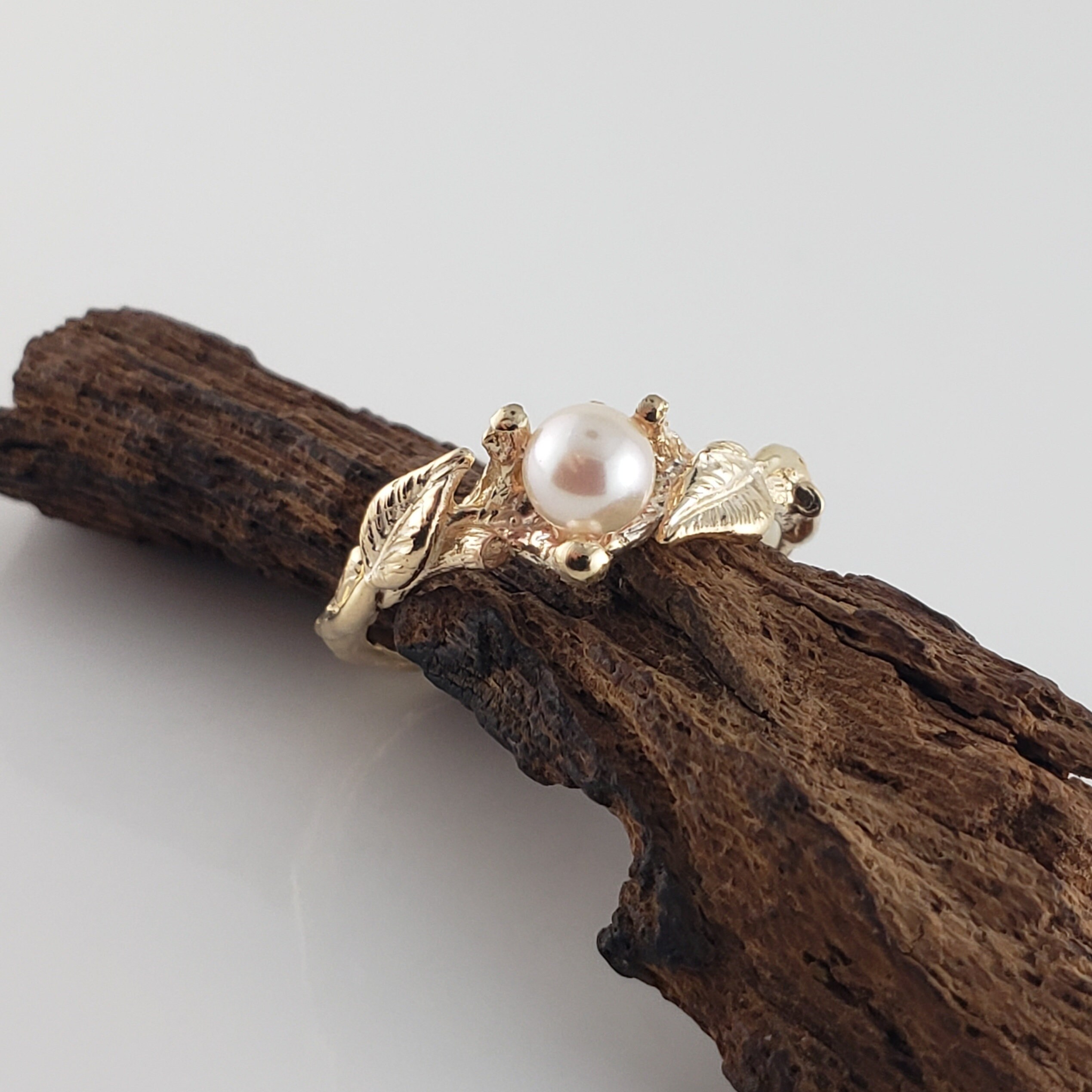 Pearl Ring, Akoya Pearl, Leaf and Twig Engagement Ring with Engagement Ring, Anniversary Gift by DV Jewelry Designs