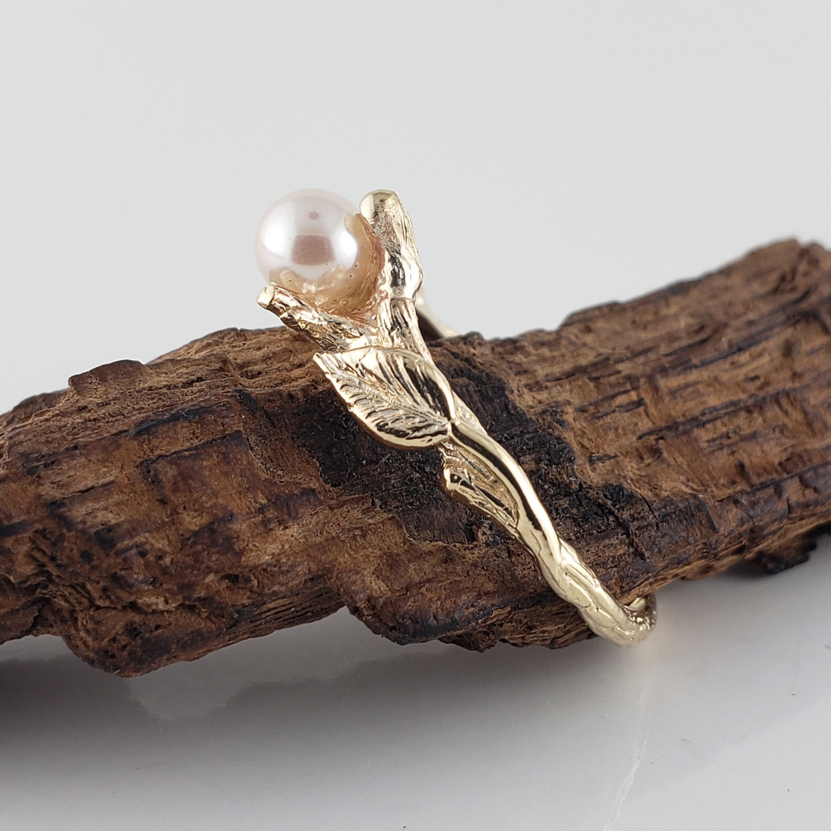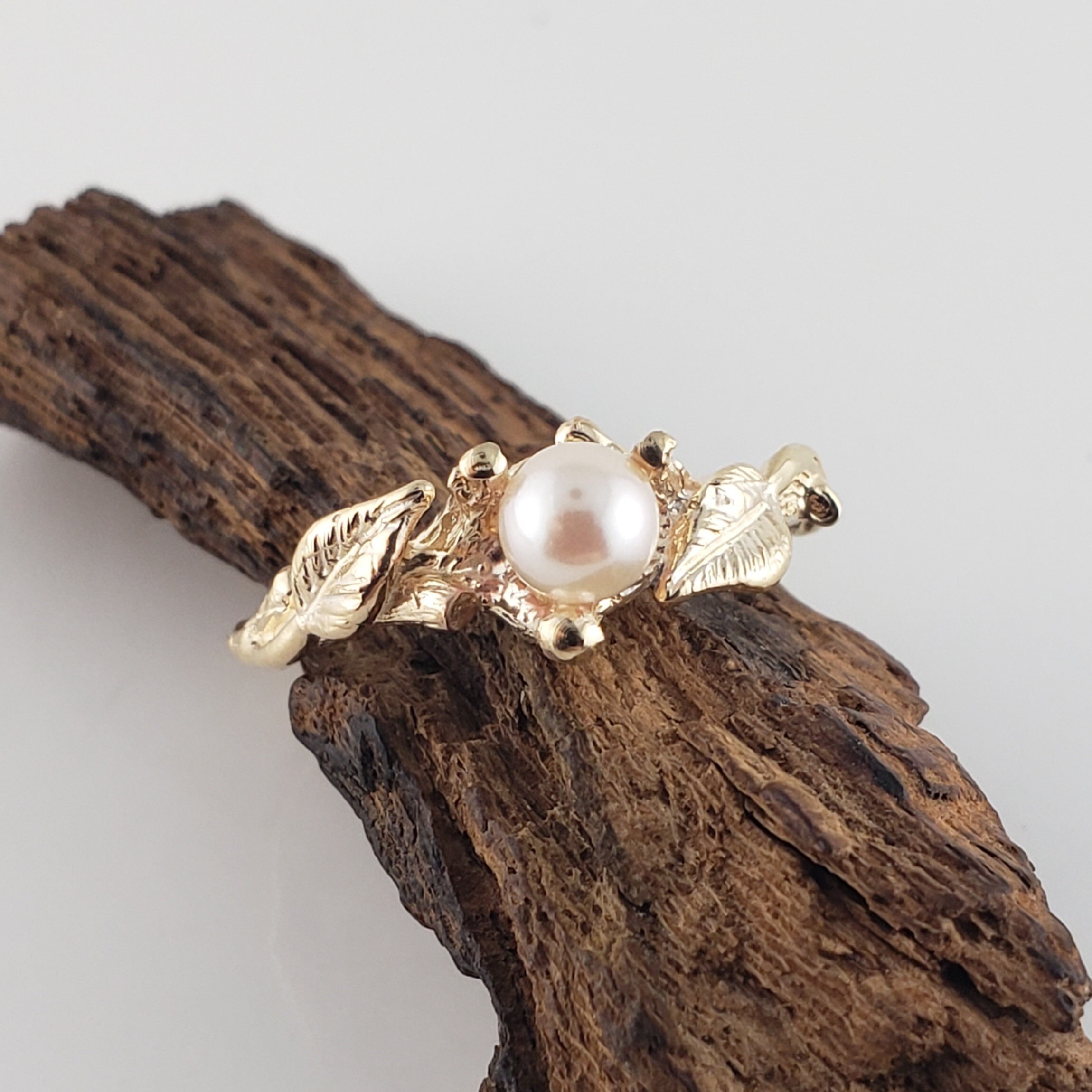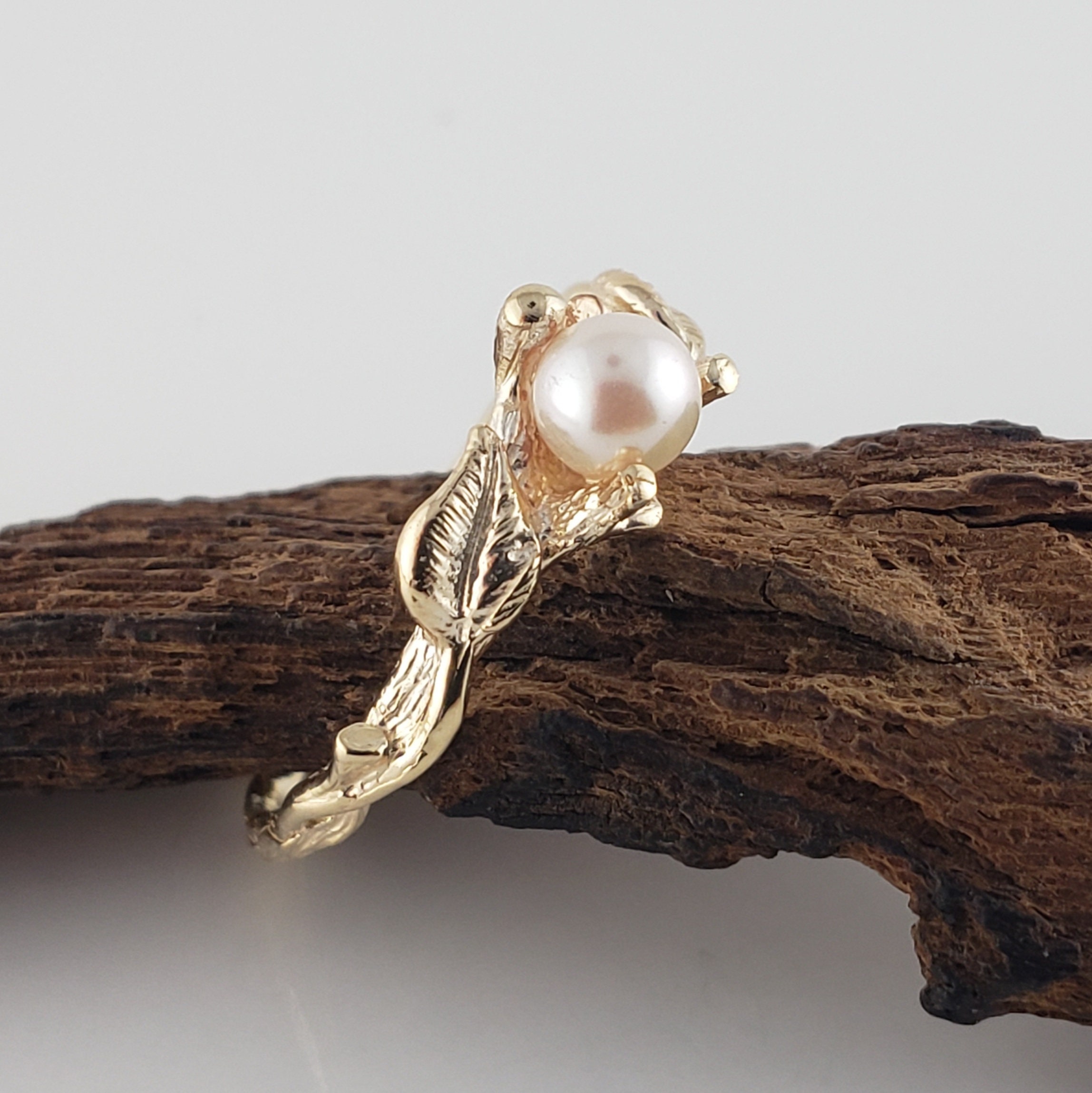 Pearl Ring, Akoya Pearl, Leaf and Twig Engagement Ring with Engagement Ring, Anniversary Gift by DV Jewelry Designs